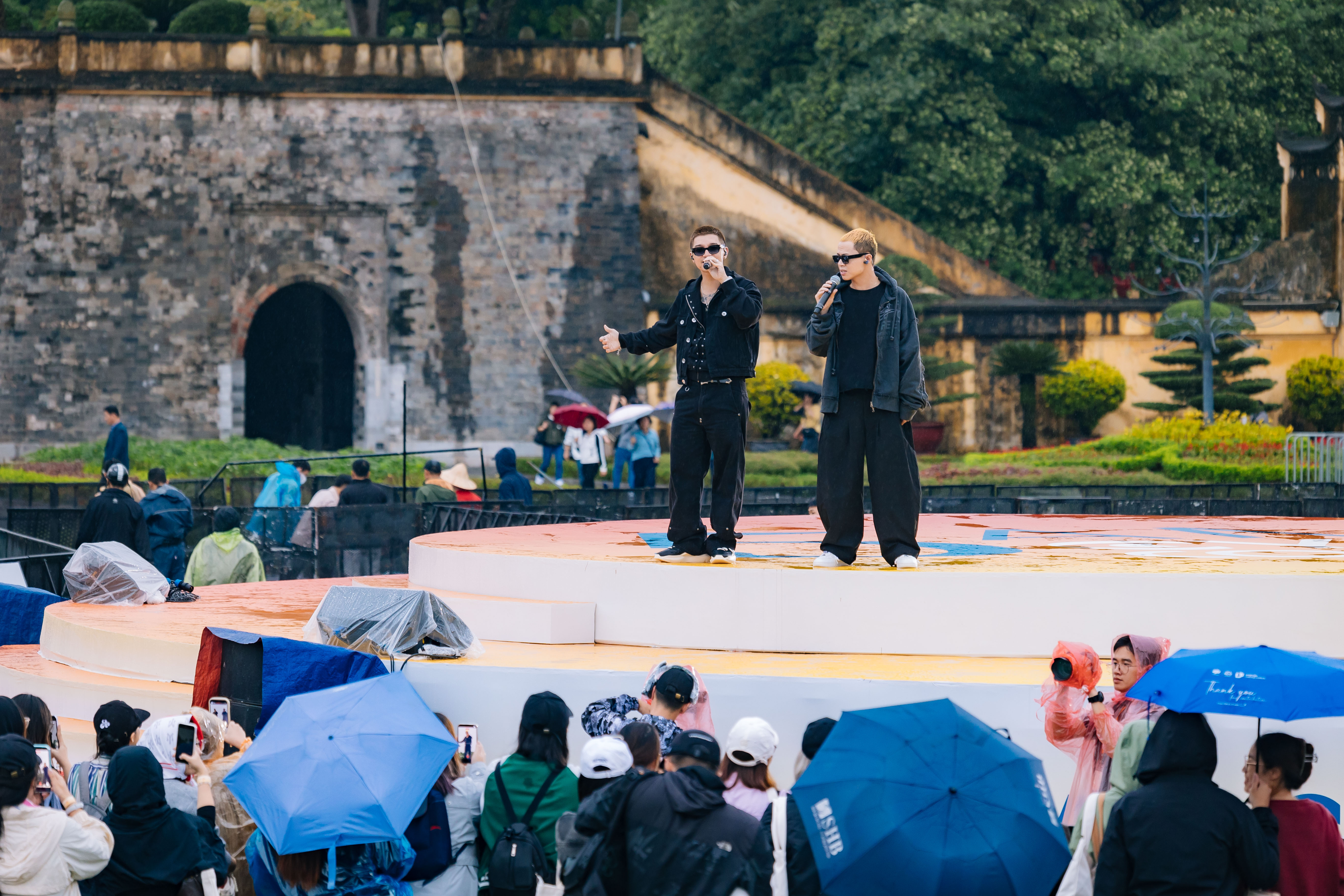 Dù mưa nhẹ, sân khấu 5AM Eye-Conic vẫn bùng nổ với màn trình diễn cuốn hút của các nghệ sĩ SpaceSpeakers. Từng giai điệu và câu rap vang lên giữa Hoàng Thành như tiếp thêm sức nóng cho không khí mùa thu Hà Nội.