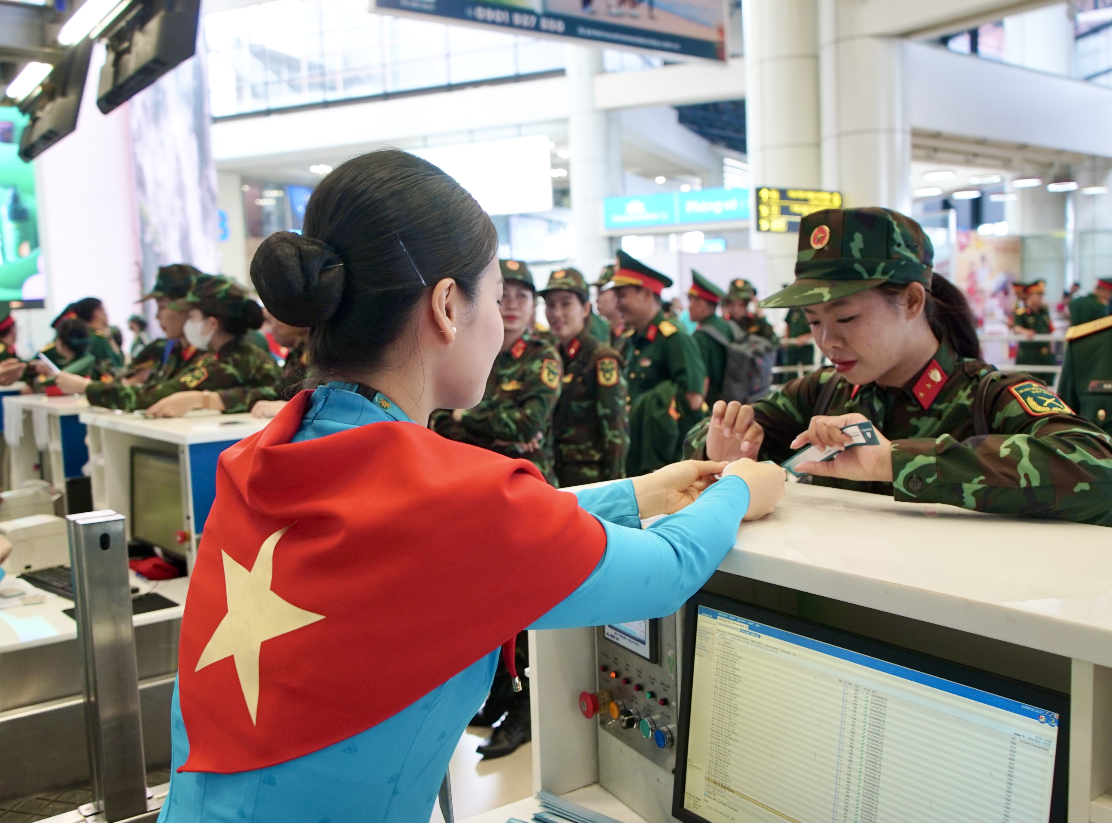 Đồng hành cùng chuyến trở về ấy, Vietnam Airlines tự hào góp phần gắn kết hậu phương và tiền tuyến, lan tỏa tinh thần trách nhiệm và niềm tự hào dân tộc trên những cánh bay. (Ảnh: VNA)