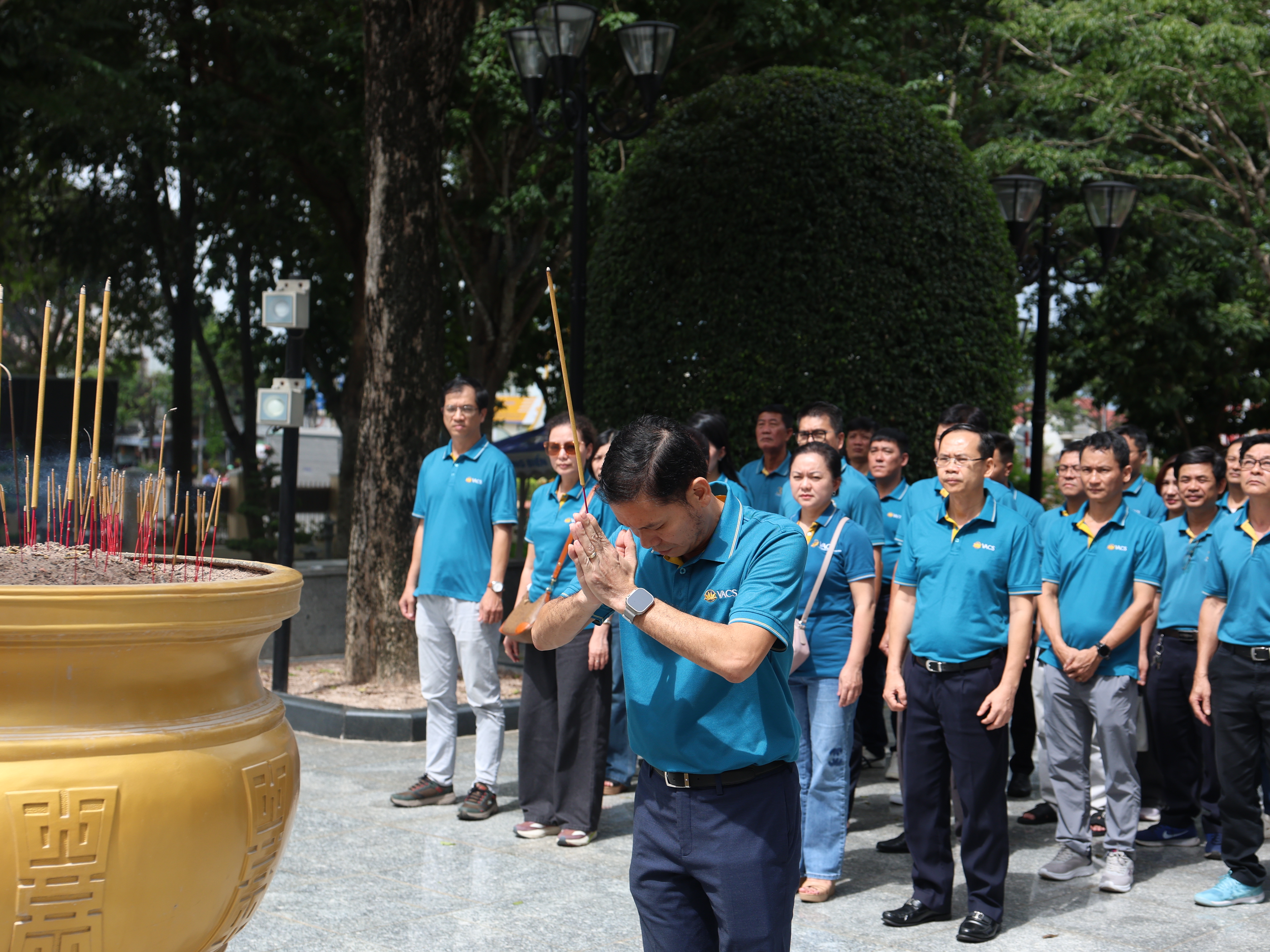 Ông Hoàng Xuân Hiệp – Bí thư Đảng ủy VACS dẫn đầu đoàn đến dâng hương tưởng niệm các anh hùng liệt sĩ tại Đền thờ Võ Thị Sáu.
