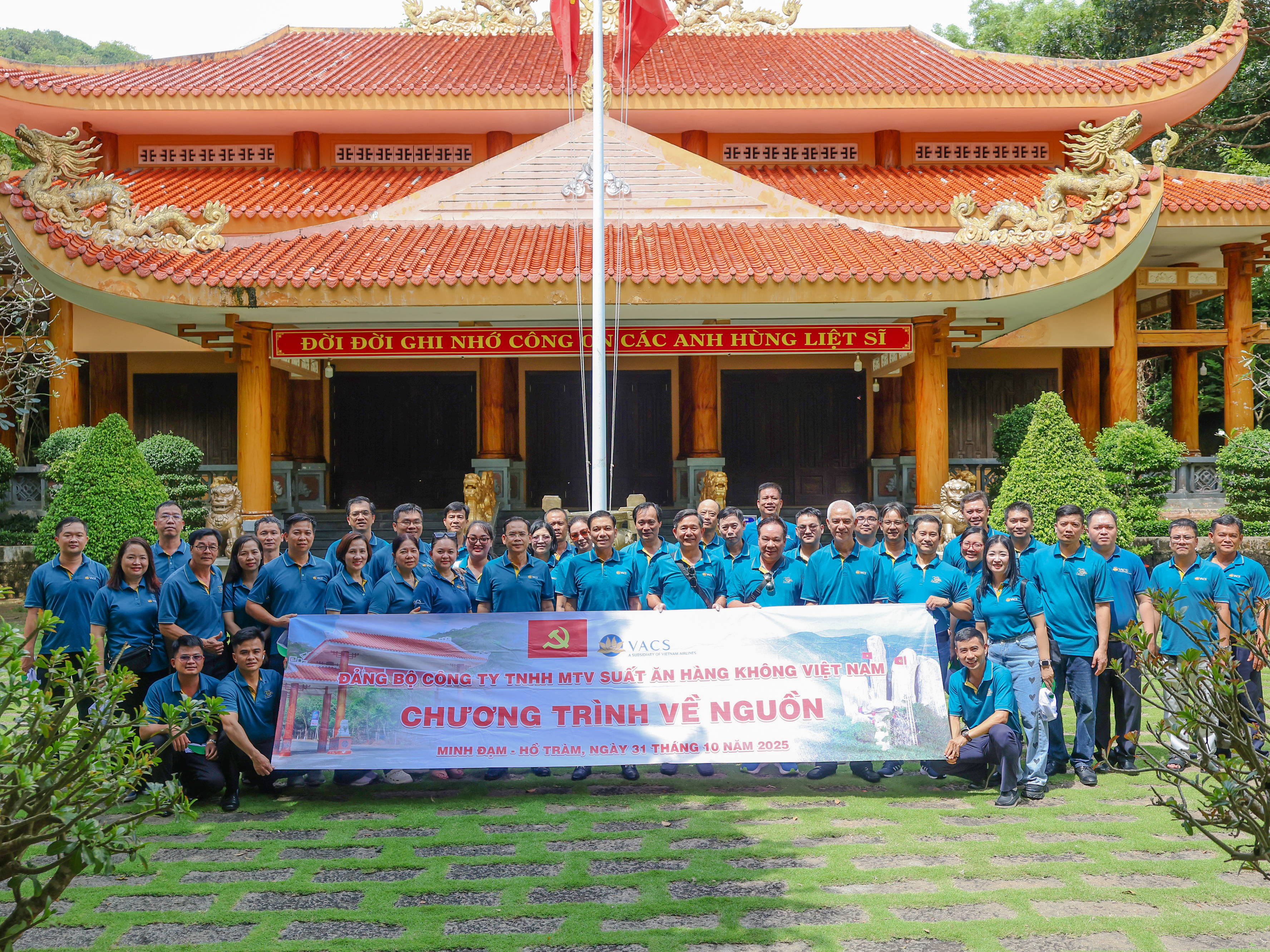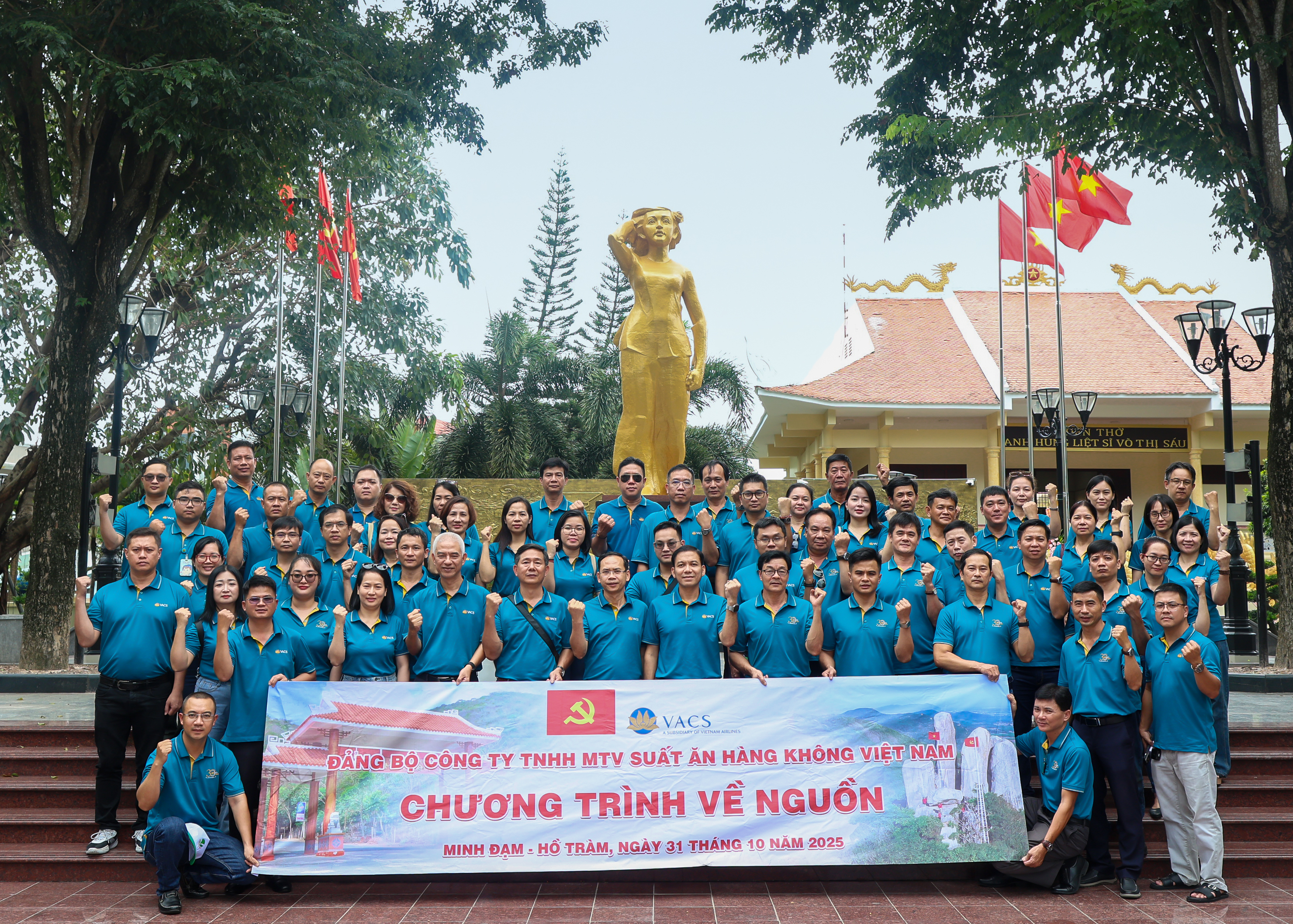Trong hai ngày 31/10 – 01/11/2025, Đảng bộ Công ty TNHH MTV Suất ăn Hàng không Việt Nam (VACS) đã tổ chức chuyến hành trình về nguồn đầy ý nghĩa tại xã Đất Đỏ, Thành phố Hồ Chí Minh (Bà Rịa – Vũng Tàu cũ). Chương trình nhằm giáo dục truyền thống cách mạng, bồi dưỡng lòng yêu nước, nâng cao nhận thức chính trị cho cán bộ, Đảng viên và quần chúng ưu tú trong toàn Đảng bộ.