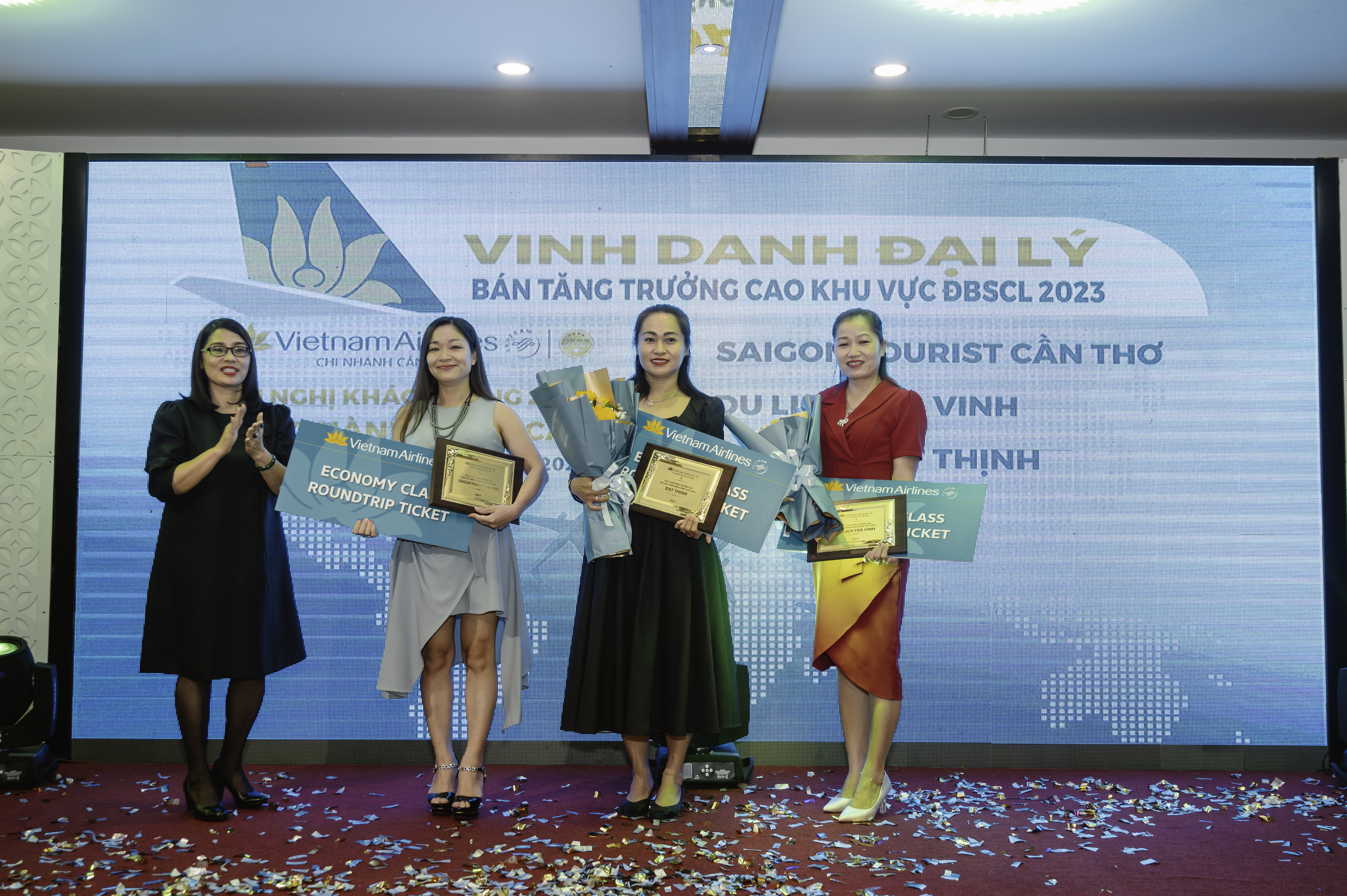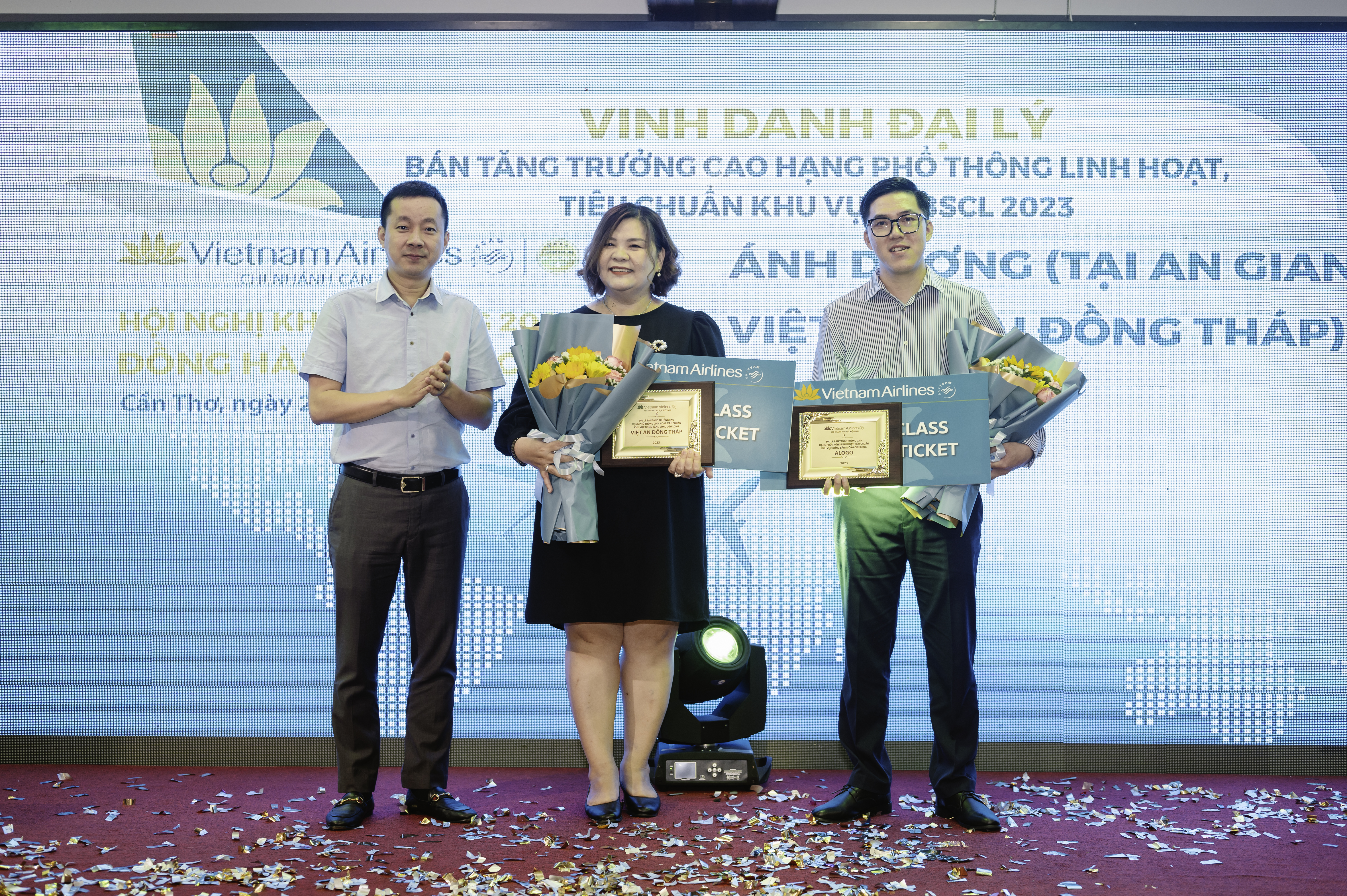 Trao thưởng cho 3 đại lý bán xuất sắc khu vực ĐBSCL 2023. (Ảnh: VNA)