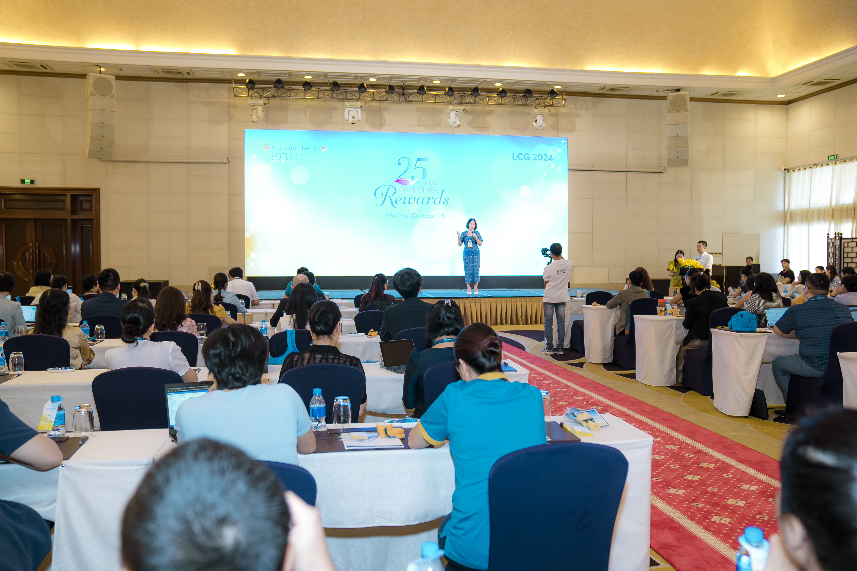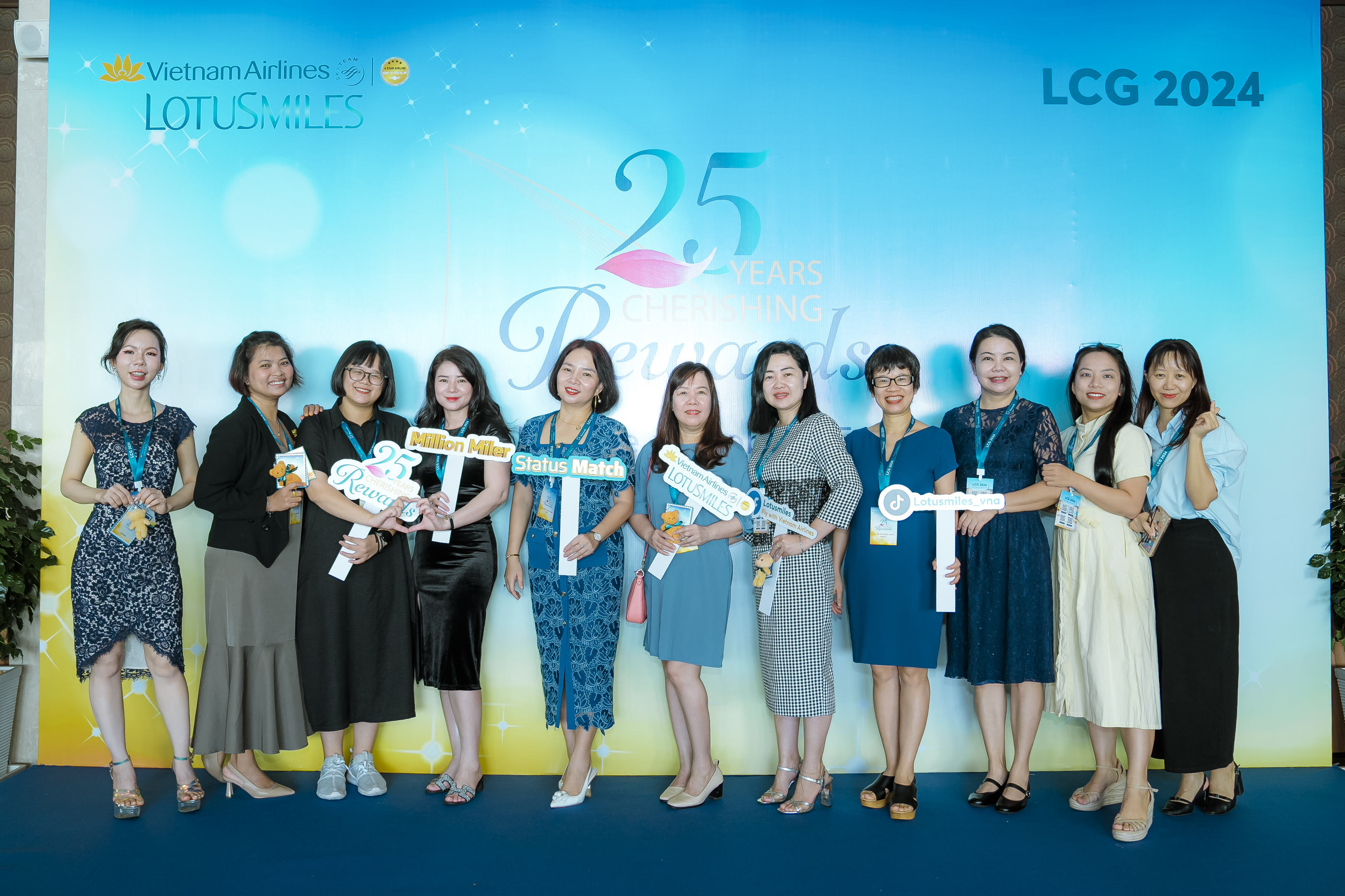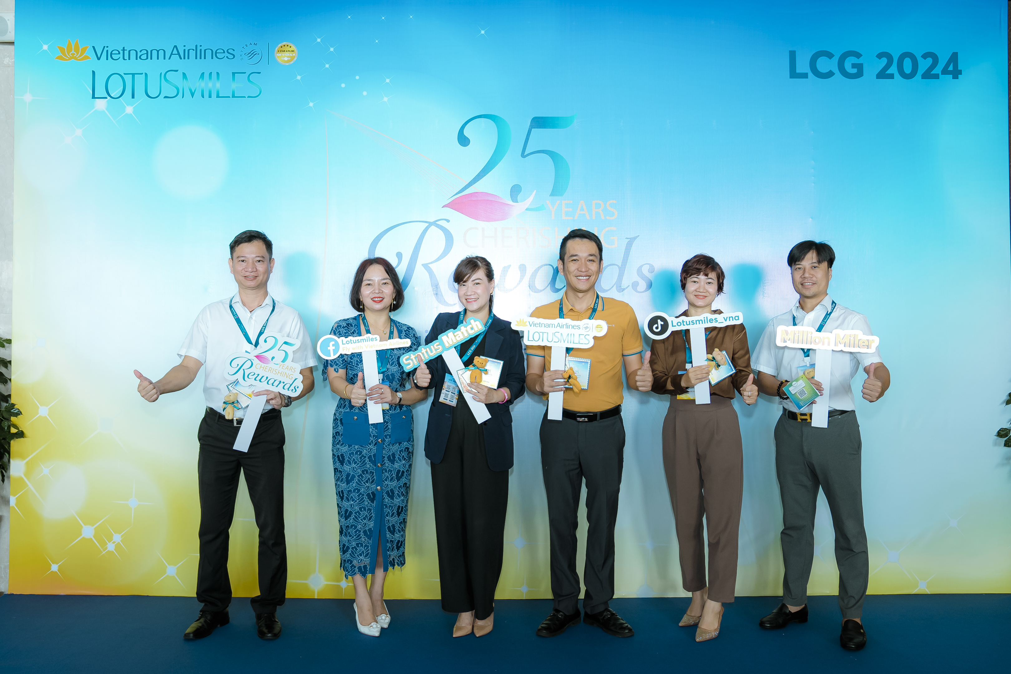 Sau khi hoàn tất thủ tục check-in, các đại biểu hào hứng tham gia chụp ảnh kỷ niệm bên backdrop mang logo kỷ niệm 25 năm Lotusmiles “Cherishing Rewards”. Đây là một dịp đặc biệt không chỉ để nhìn lại chặng đường đã qua của Lotusmiles, mà còn là cơ hội để tất cả các thành viên trong gia đình Vietnam Airlines – Lotusmiles cùng nhau xây dựng kế hoạch cho tương lai, giúp đưa chương trình khách hàng thường xuyên Bông Sen Vàng chinh phục những đỉnh cao mới. Đồng thời đóng vai trò ngày càng quan trọng để hành khách lựa chọn bay cùng Vietnam Airlines và liên minh SkyTeam. Thật trùng hợp, khi LCG 2024 được tổ chức đúng vào ngày 25 tháng 10 năm 2024, như một sự tri ân cho sự kiện kỷ niệm 25 năm của Lotusmiles.