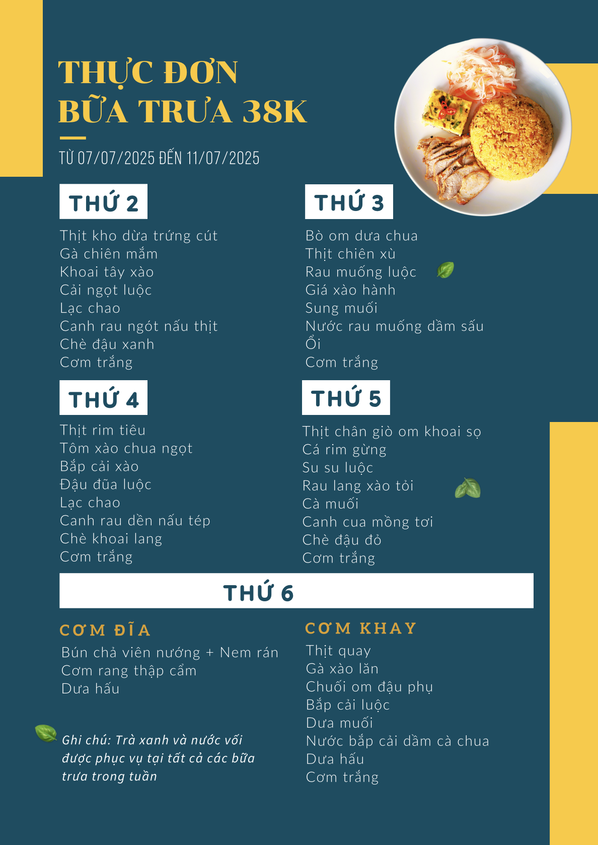 Bữa trưa tuần này có sự góp mặt của những món ăn nhẹ nhàng mà đưa cơm vô cùng: thịt kho trứng cút vàng ươm, bò kho dưa đậm vị, rau muống luộc xanh mướt ăn kèm nước mắm chanh tỏi cay nhẹ. Có hôm lại mát lòng với bát canh rau ngót nấu thịt hoặc đơn giản chỉ là nước rau muống dầm sấu chua thanh – thứ “đặc sản mùa hè” tưởng giản dị mà khiến ai cũng thấy dễ chịu.