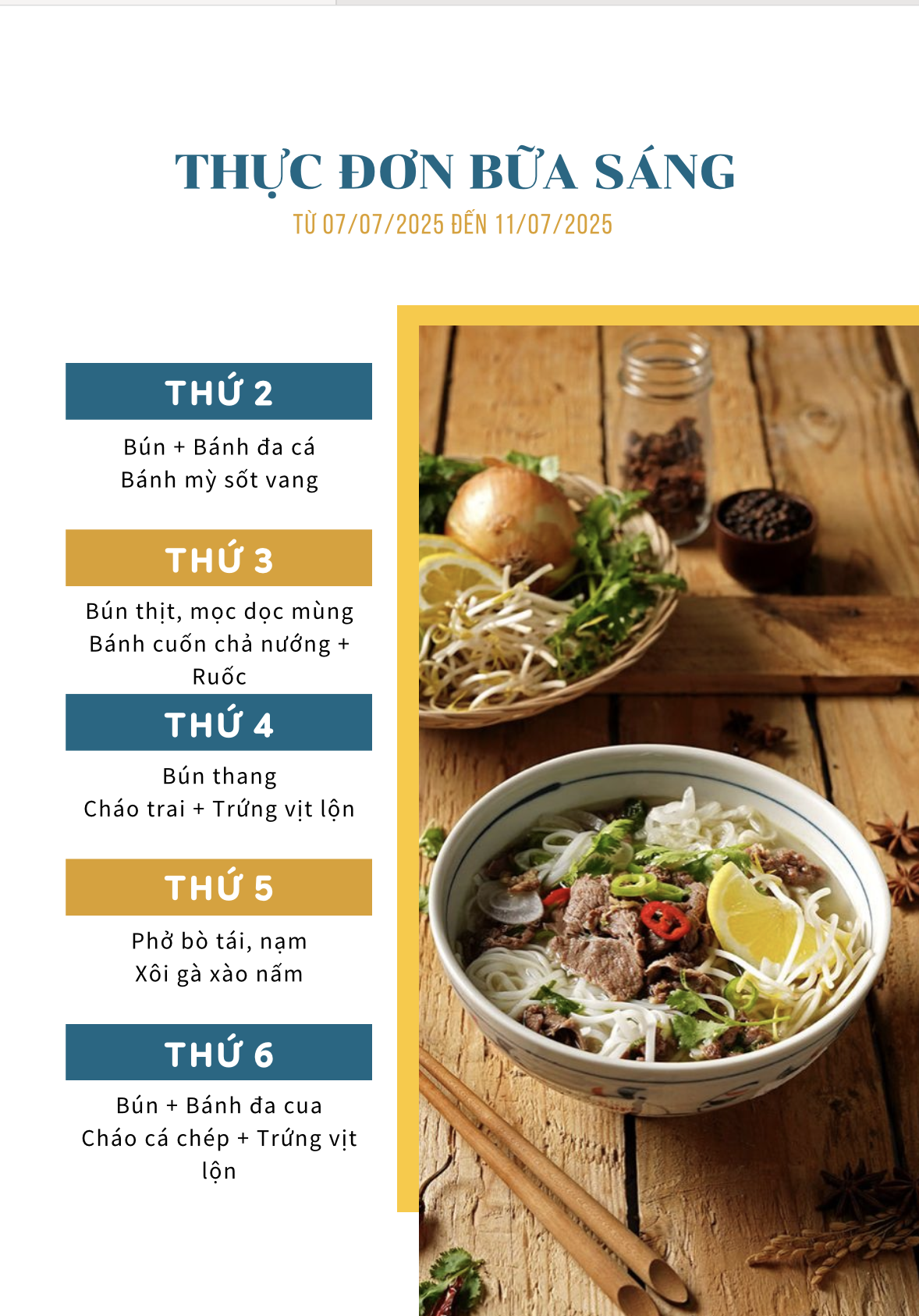 Bữa sáng tuần này vẫn đủ đầy và dễ chịu như mọi khi. Bạn có thể chọn bánh mì sốt vang mềm thịt, đậm đà; bánh cuốn thơm, mềm mịn; hay đơn giản là bát cháo trai bùi bùi, ăn cùng trứng vịt lộn cho chắc bụng. Mỗi sáng một lựa chọn, vừa đủ ngon miệng, vừa giúp khởi động ngày mới một cách nhẹ nhàng và đầy năng lượng.