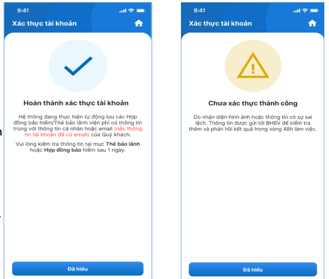Bước 4: Chụp ảnh chân dung: Xem hướng dẫn hiển thị trên màn hình → Chọn <Đã hiểu> → Chọn <Bắt đầu> → Giữ điện thoại ngang mặt, căn khuôn mặt vào khung và làm theo hướng dẫn → Chọn <Gửi thông tin>.