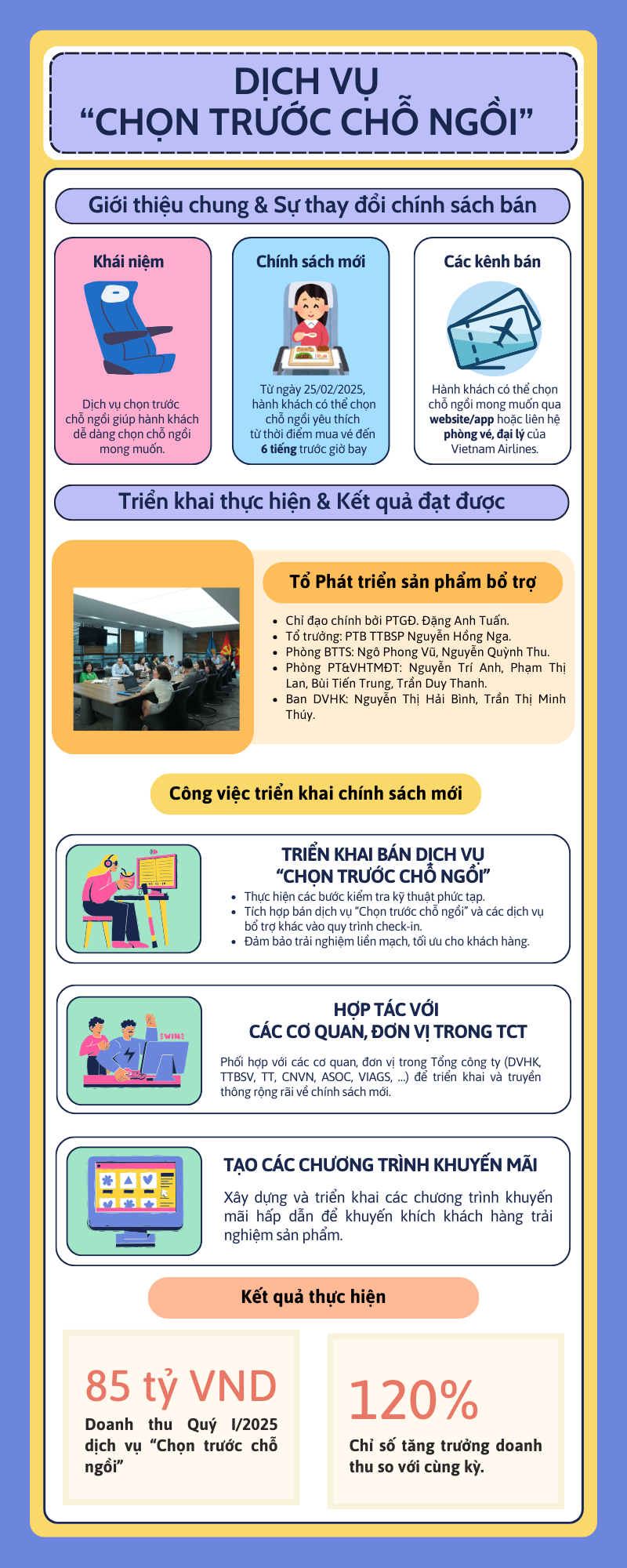 Việc hành khách ngày càng chủ động lựa chọn dịch vụ giá trị gia tăng không chỉ mang lại trải nghiệm dễ chịu hơn trên mỗi chuyến bay, mà còn tạo cú hích đáng kể cho doanh thu của Vietnam Airlines. Theo báo cáo mới nhất, doanh thu từ dịch vụ chọn trước chỗ ngồi trong quý I/2025 đã tăng hơn gấp đôi so với cùng kỳ năm trước, vượt các chỉ tiêu đề ra.