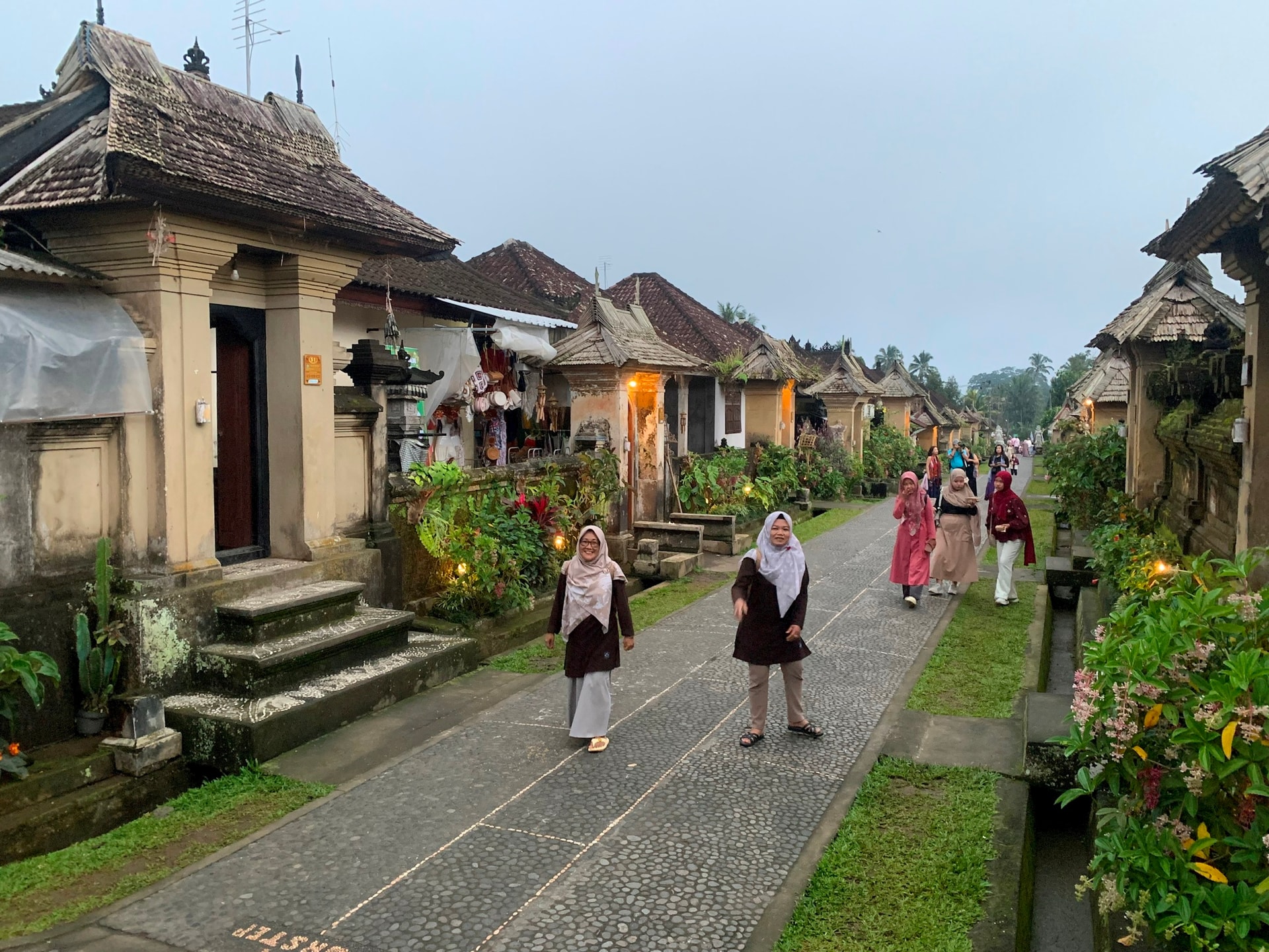 Các loài hoa cũng được trồng giống nhau ở mỗi nhà và lối đi lát đá xuyên ngang qua khu nhà khách, bếp, khu thờ tổ tiên và một số nhà có phòng đón khách ở xa. Đặc biệt, các ngôi nhà liền kề đều có lối thông sang nhau.