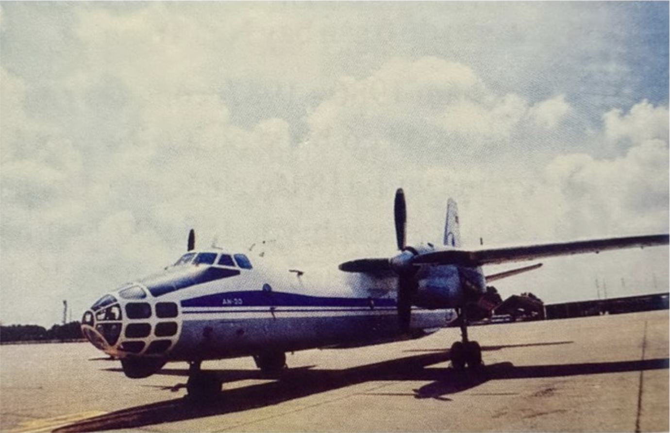 Chuyên cơ An-24 chở Tổng Bí thư Lê Duẩn đi công tác tỉnh Quảng Bình năm 1973. (Ảnh: Sưu tầm)