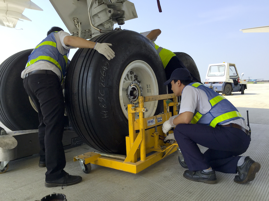 Kiểm tra càng. Theo các kỹ sư, tùy theo tình trạng của máy bay, việc bảo trì, sửa chữa một chiếc có thể mất vài ngày đến cả tháng.