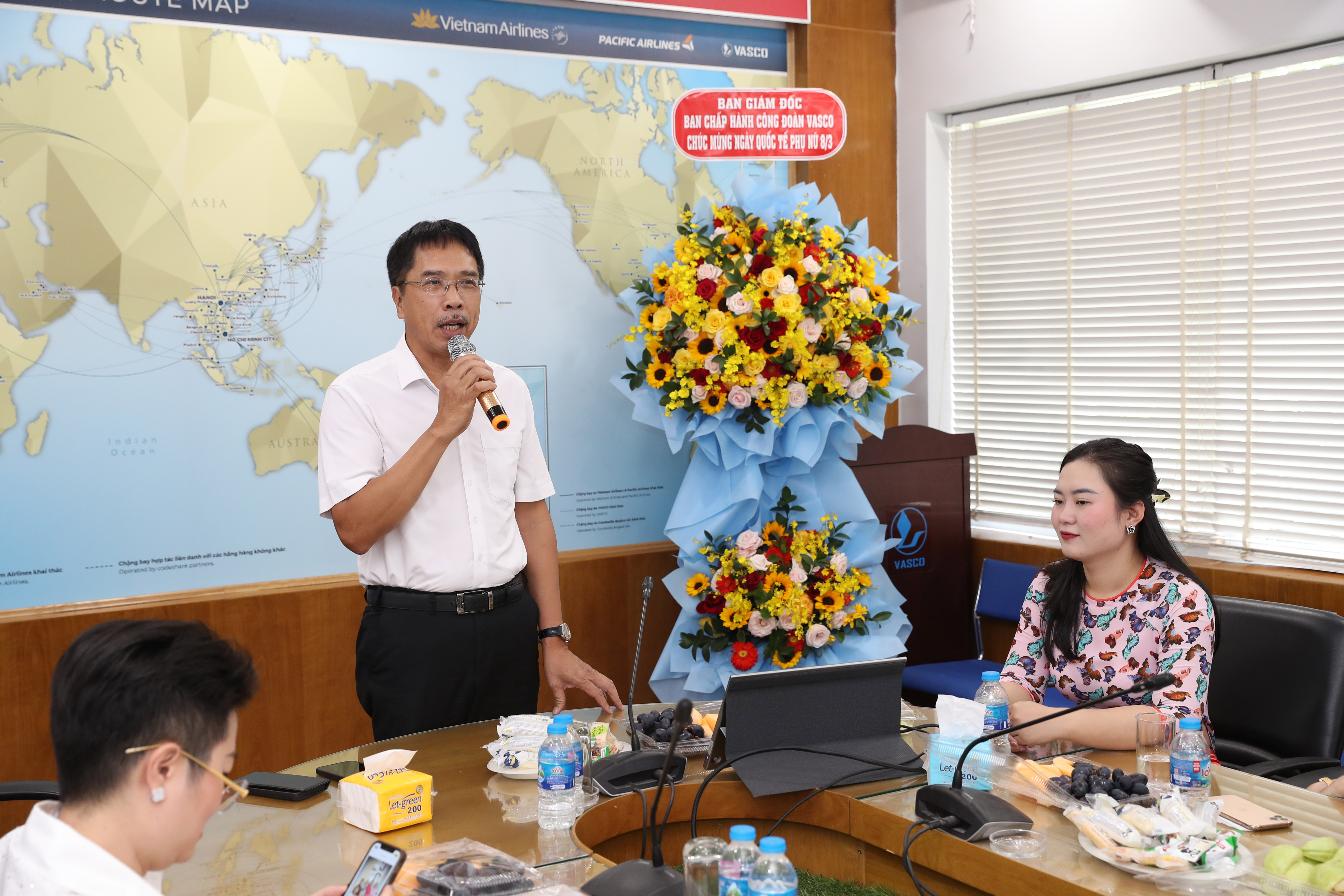Ông Hà Duy Quang – Đảng uỷ viên TCT HKVN, Bí thư Đảng uỷ, Giám đốc VASCO phát biểu chúc mừng các nữ CBNV. (Ảnh: VASCO)