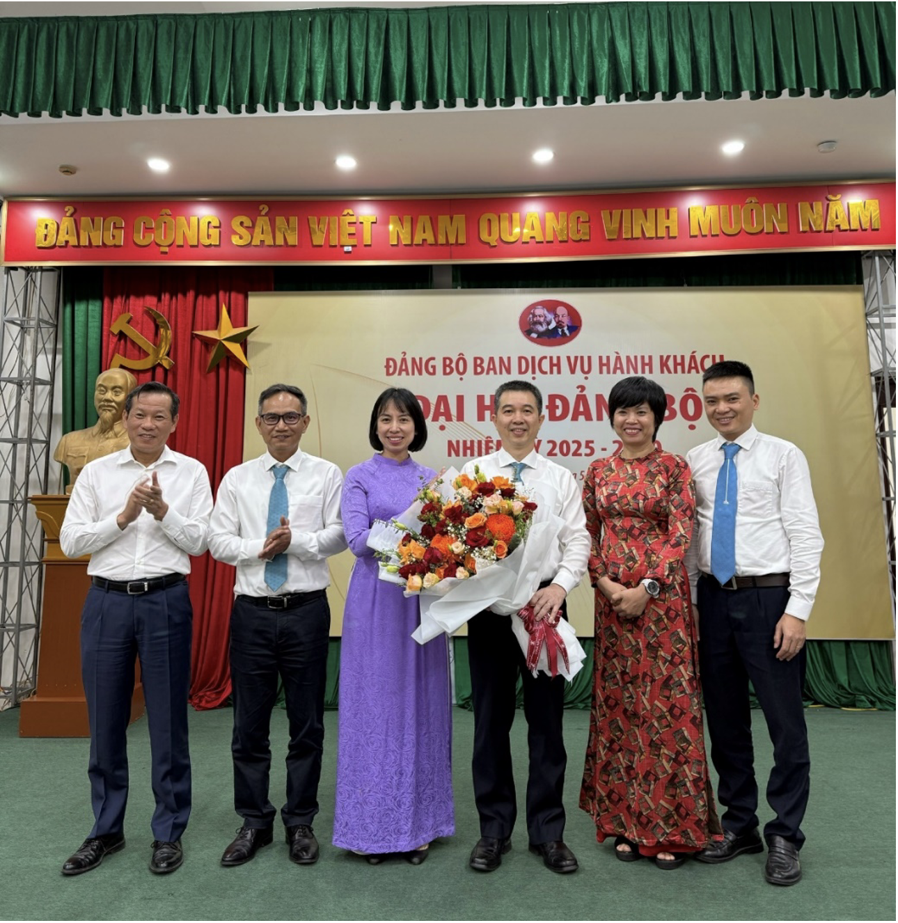 Đại hội Đảng bộ Dịch vụ Hành khách nhiệm kỳ 2025–2030 đã bầu ra Ban Chấp hành gồm 5 đồng chí: đồng chí Ngô Hồng Minh giữ chức vụ Bí thư; đồng chí Hà Thị Thu Nga giữ chức vụ Phó Bí thư; các đồng chí Lê Minh Tuấn, Trần Nhị Hà và Nguyễn Danh Phong là Ủy viên Ban Chấp hành.