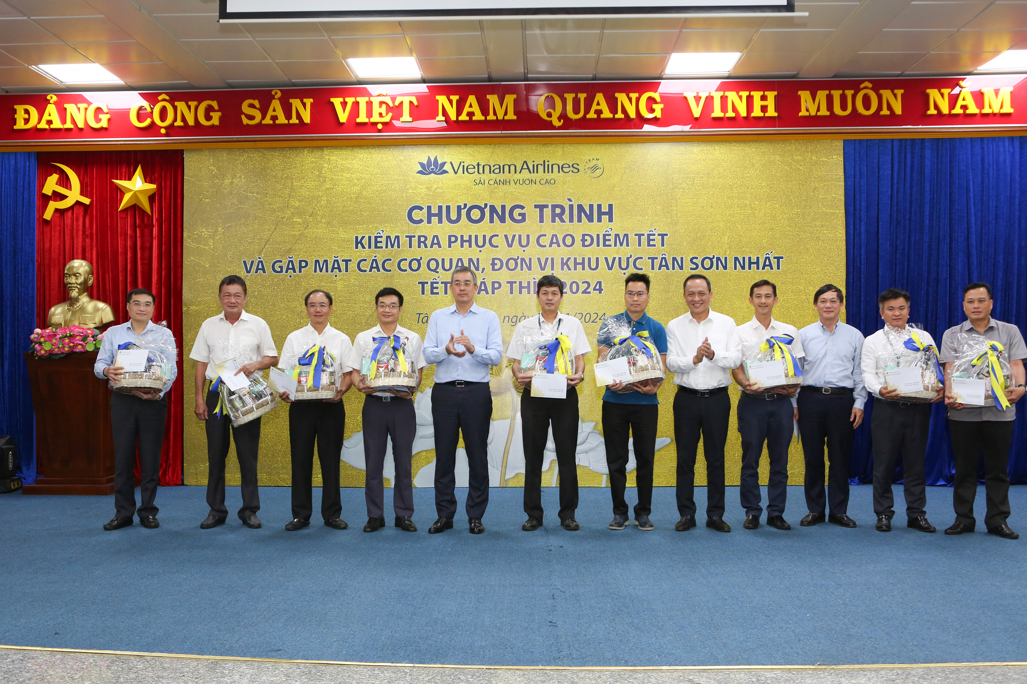 Trước thềm năm mới, chuẩn bị đón mùa xuân Giáp Thìn 2024, Lãnh đạo TCT cũng có những phần quà gửi tặng cho đại diện lãnh đạo các cơ quan đơn vị, các công ty vốn góp, công ty thành viên khu vực Tân Sơn Nhất, Đà Nẵng, Nội Bài cùng lời chúc sức khoẻ, nỗ lực hoàn thành tốt các mục tiêu của TCT.