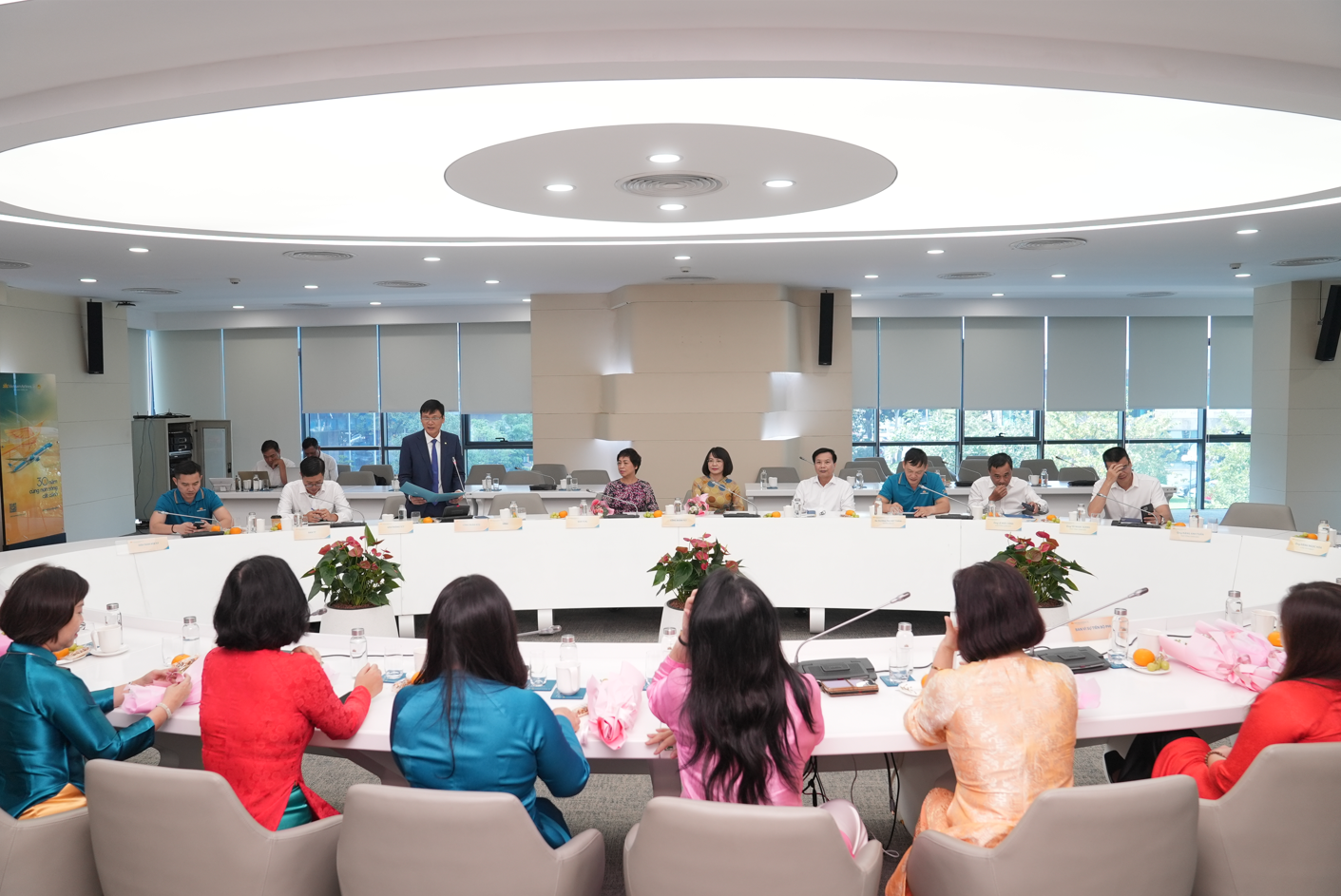 Trong không khí mát lành của những ngày thu Hà Nội, TCT Hàng không Việt Nam đã long trọng tổ chức buổi gặp mặt, chúc mừng các nữ cán bộ lãnh đạo – những đại diện tiêu biểu cho toàn thể nữ cán bộ, nhân viên của TCT. Sự kiện không chỉ là dịp tôn vinh vẻ đẹp và vai trò của người phụ nữ trong xã hội, mà còn thể hiện sự trân trọng, ghi nhận những nỗ lực và đóng góp bền bỉ của các chị em trong công việc cũng như cuộc sống.