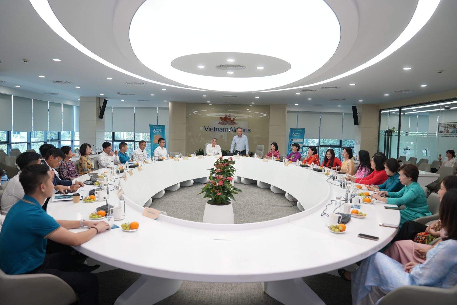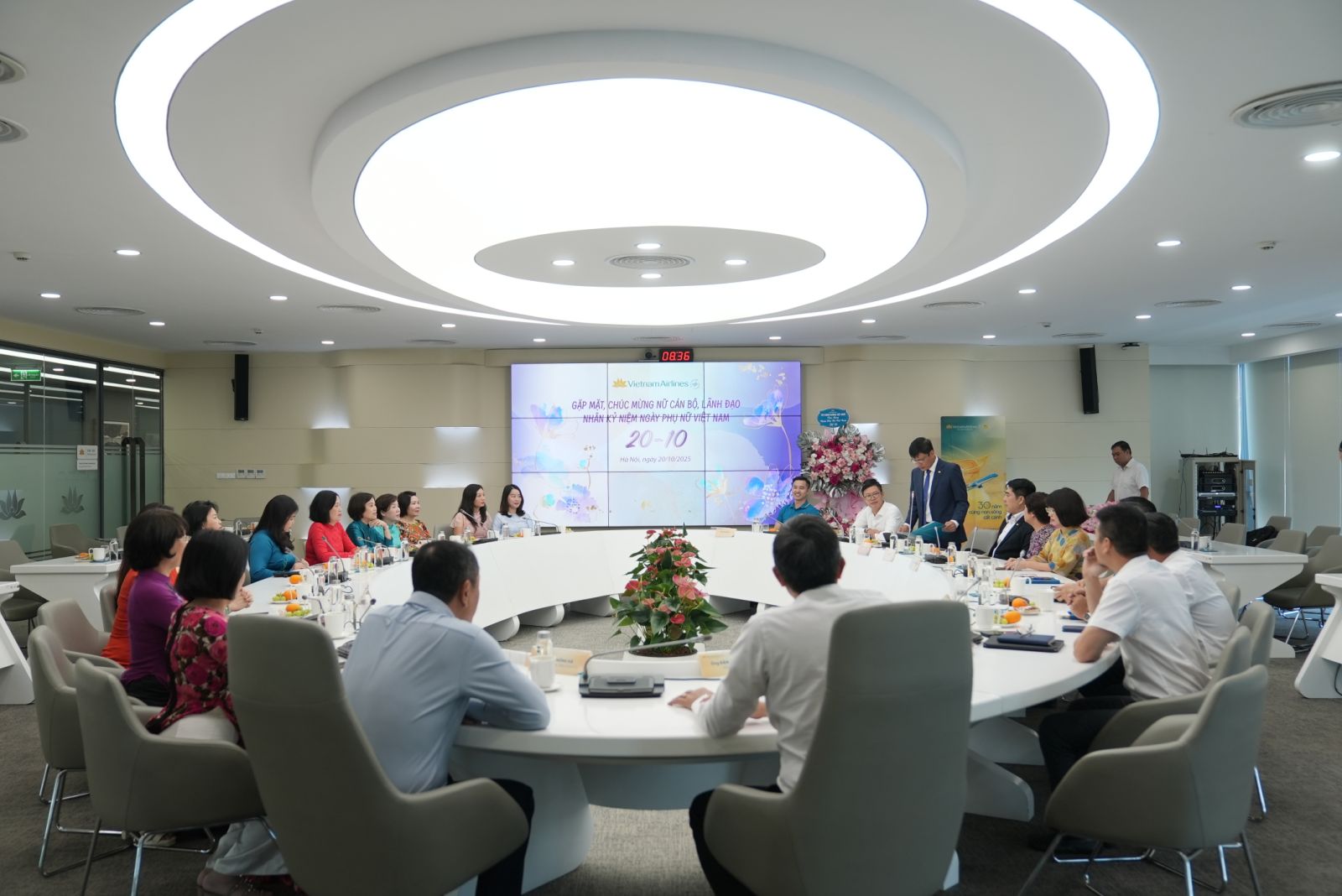 Buổi gặp mặt khép lại trong không khí ấm cúng, tràn đầy niềm vui và tình cảm. Những bó hoa tươi thắm được gửi trao như lời tri ân sâu sắc tới toàn thể chị em – những “bông hoa” của Vietnam Airlines.