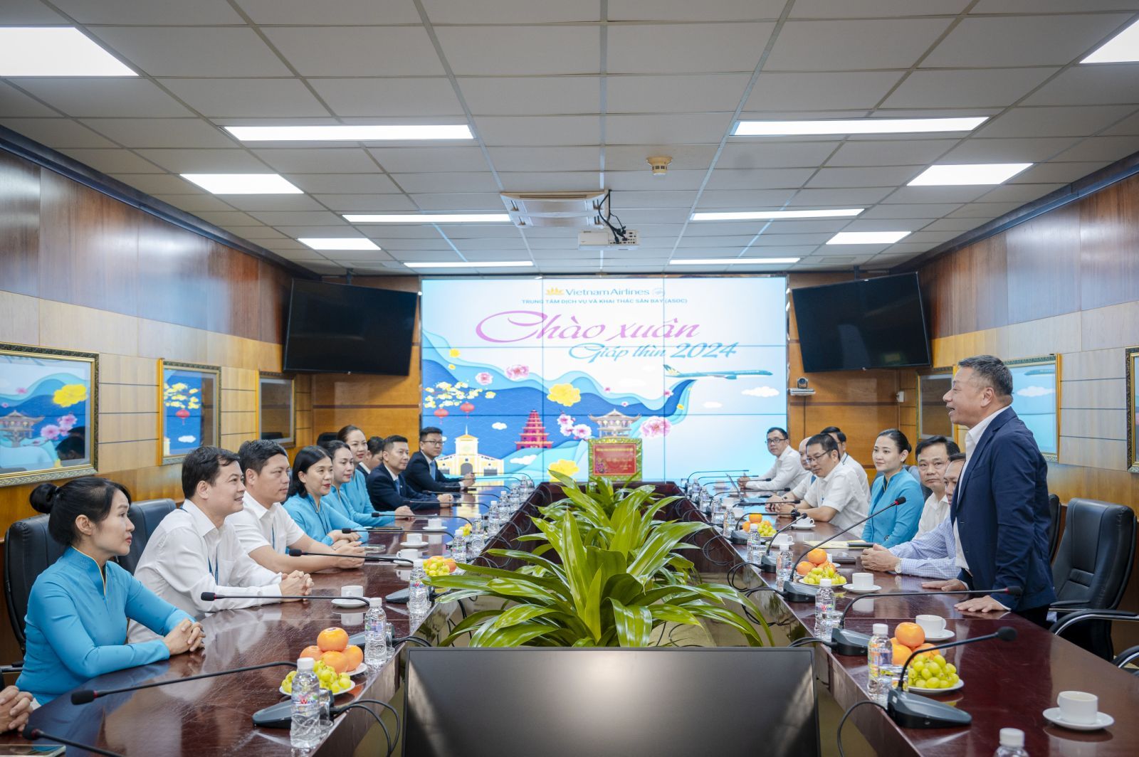 Nhân dịp xuân Giáp Thìn, đồng chí Trung tướng Lê Quang Minh chúc Trung tâm Dịch vụ và Khai thác sân bay ngày càng phát triển vững mạnh và tiếp tục hoàn thành xuất sắc nhiệm vụ được giao. Đồng chí cũng gửi lời thăm hỏi, chúc mừng năm mới nhiều sức khỏe, hạnh phúc, hoàn thành xuất sắc mọi nhiệm vụ tới toàn thể cán bộ, chuyên viên của ASOC.