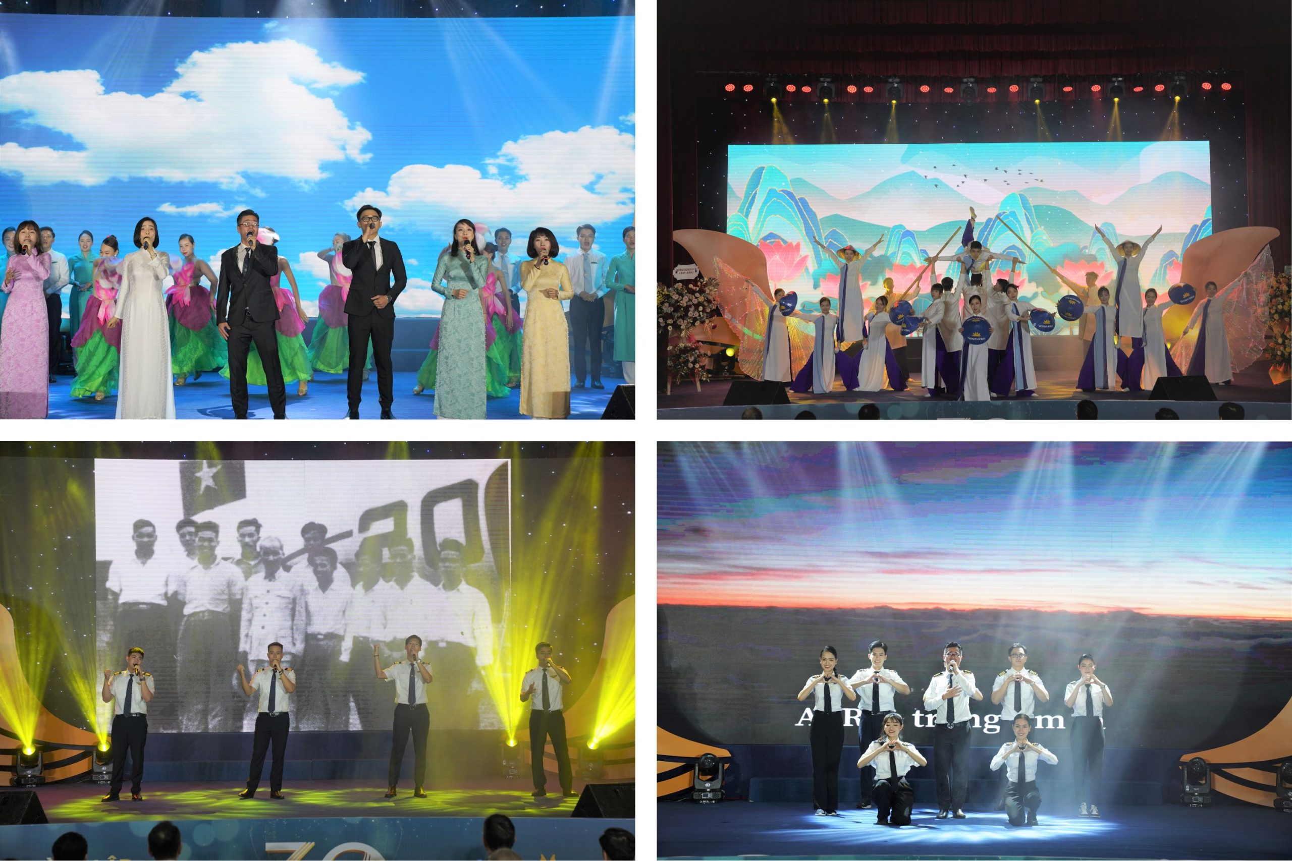 Mở đầu chương trình, các đại biểu tham dự đã được thưởng thức phần văn nghệ chào mừng hết sức công phu và vô cùng đặc sắc. Các tiết mục do chính các CBNV của VNA Group trình diễn. 4 tiết mục đến từ Trung tâm Huấn luyện bay, Đoàn bay 919 và Công ty Cổ phần Suất ăn Hàng không Việt Nam đã thực sự khuấy động bầu không khí tại Hội trường Trung tâm Văn hóa Hàng không.