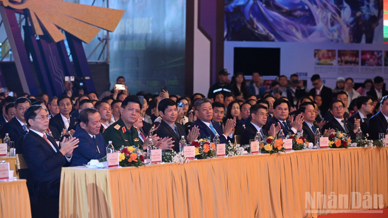 Các đồng chí lãnh đạo, đại biểu tham dự lễ bế mạc. (Ảnh: TRẦN HẢI)