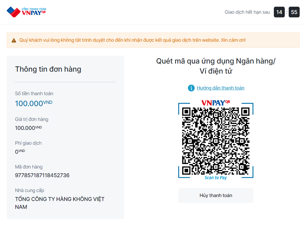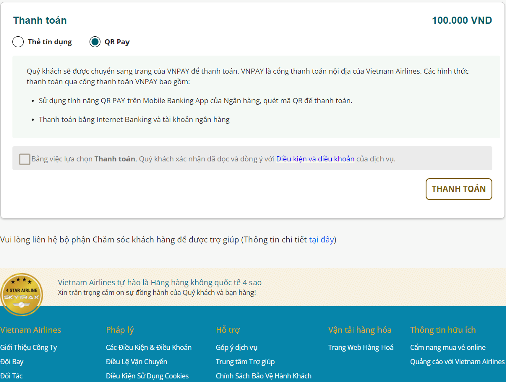 Bước 3: Khách được dẫn sang trang thanh toán để thực hiện thanh toán.