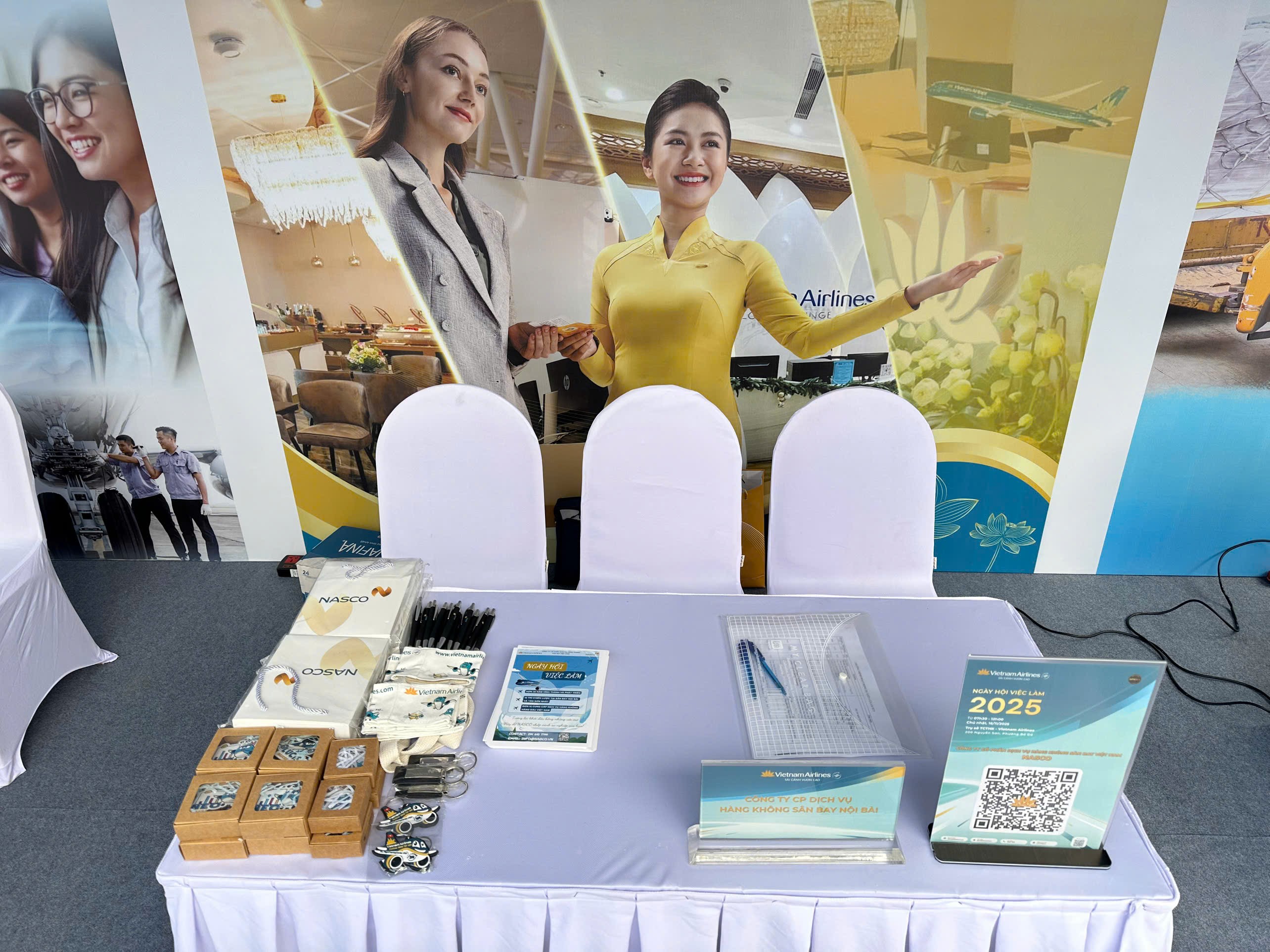 Tại gian hàng của NASCO, đội ngũ tư vấn tuyển dụng giới thiệu nhiều cơ hội việc làm thuộc nhóm nhân viên dịch vụ tuyến đầu phục vụ hành khách như nhân viên lễ tân, nhân viên đón tiễn hành khách, nhân viên phục vụ khách hàng, cũng như những thông tin về dịch vụ phi hàng không tại sân bay. Với những vị trí này, ứng viên được rèn luyện kỹ năng giao tiếp, tác phong và khả năng xử lý tình huống linh hoạt trong môi trường chuyên nghiệp.