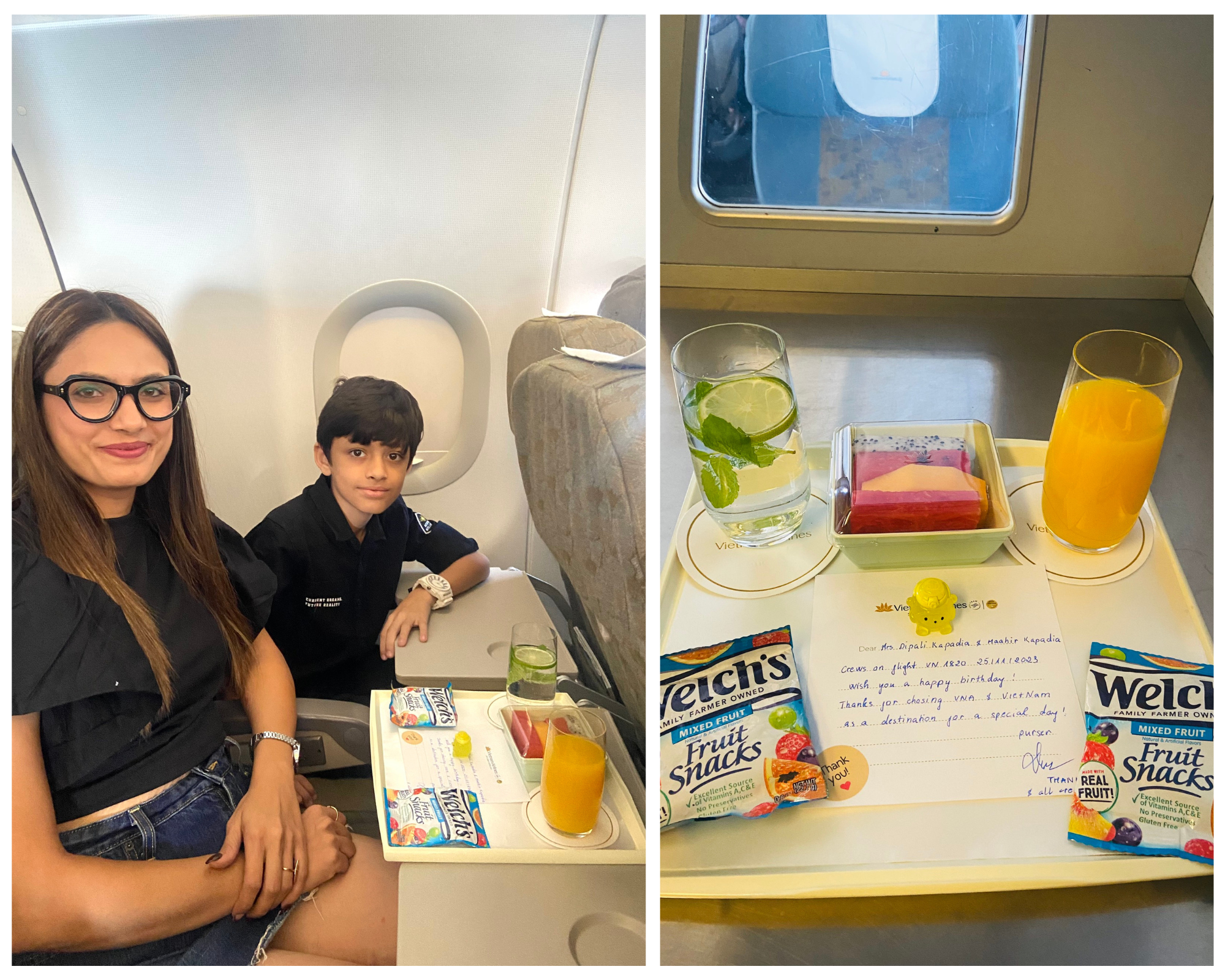 Trong quá trình đón khách lên tàu bay có một gia đình nhỏ người Ấn Độ đi cùng nhau đầy hào hứng, người chồng nán lại phía sau để gặp tôi và ngỏ ý muốn có một điều đặc biệt cho vợ và con trai mình vì hôm nay là sinh nhật của cả hai mẹ con.