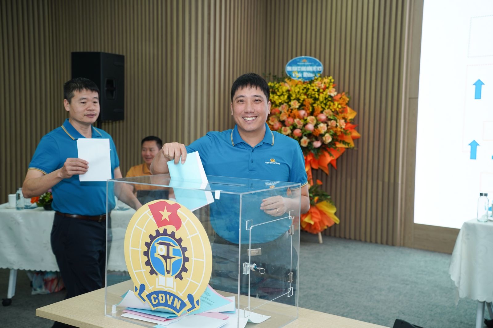 Với tinh thần dân chủ, trách nhiệm và thống nhất cao, Đại hội đã tiến hành bầu Ban Chấp hành Công đoàn cơ sở Khối Cơ quan TCT lần thứ XI, nhiệm kỳ 2025-2030 gồm 13 đồng chí và bầu đoàn đại biểu tham dự Đại hội VII Công đoàn TCT Hàng không Việt Nam, nhiệm kỳ 2025-2030 gồm 7 đại biểu chính thức và 2 đại biểu dự khuyết. (Ảnh: VNA)
