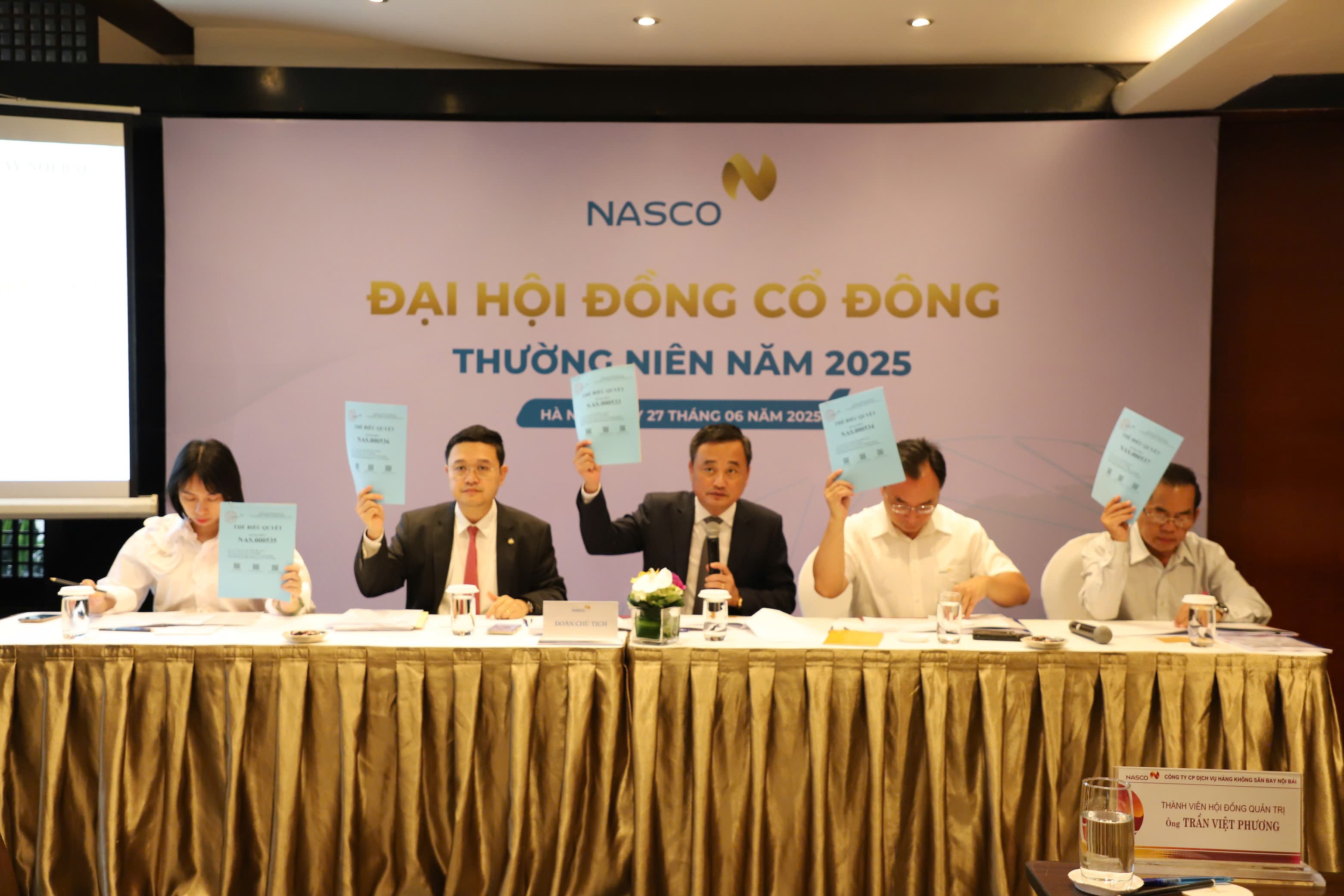Toàn bộ nội dung Biên bản và Nghị quyết Đại hội đồng cổ đông thường niên năm 2025 của NASCO đã được công bố công khai theo quy định của Luật Chứng khoán, gửi tới Ủy ban Chứng khoán Nhà nước, Sở Giao dịch Chứng khoán Hà Nội và đăng tải trên website chính thức của Công ty.