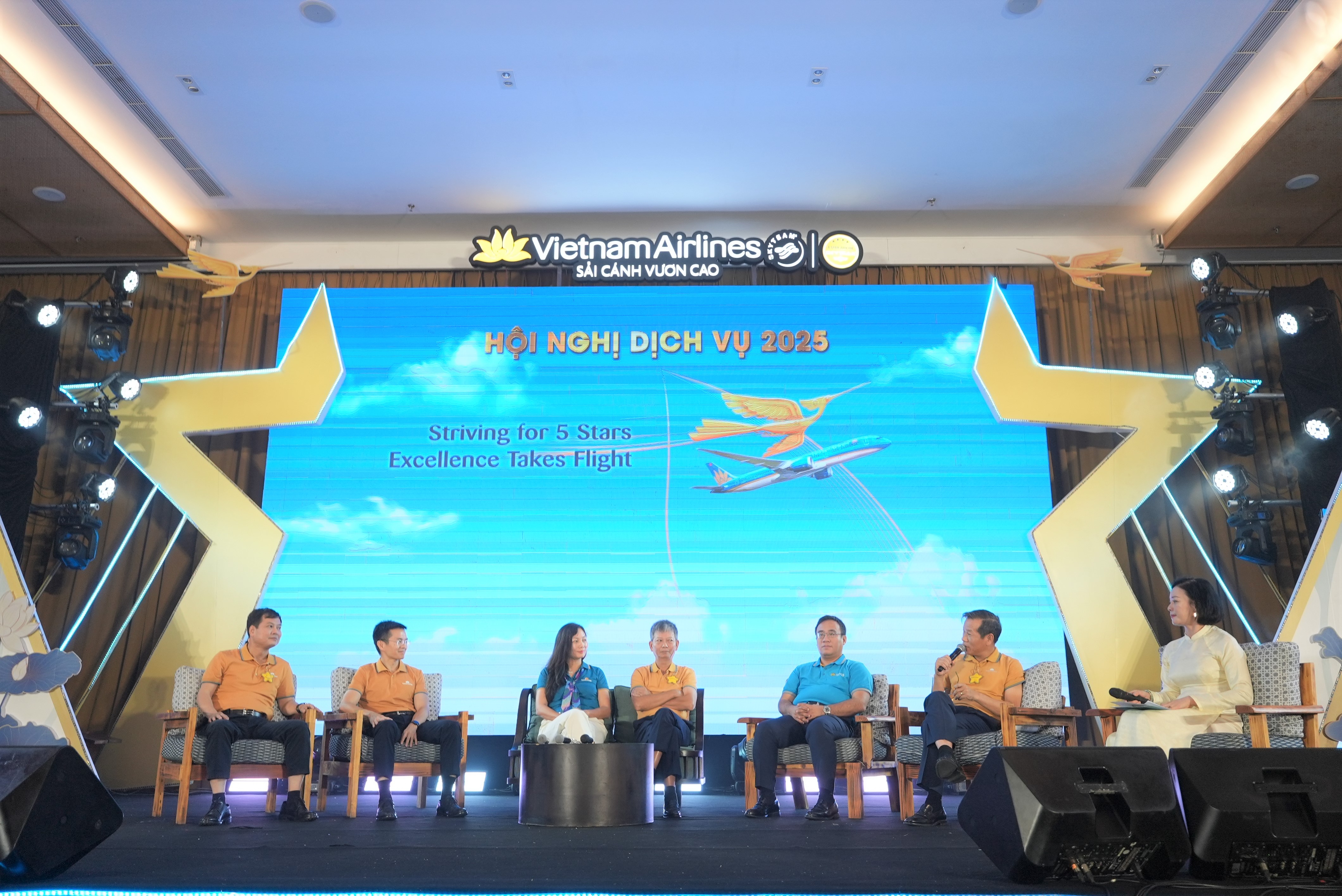 Xen giữa các màn trình diễn là phần nội dung trọng tâm của chương trình – tọa đàm chuyên đề với sự tham gia của các lãnh đạo cấp cao, chuyên gia và đại diện các đơn vị chủ chốt trong toàn hệ thống, dưới sự chủ trì của Phó Tổng Giám đốc Đặng Anh Tuấn. Thông điệp lan tỏa từ phần tọa đàm khẳng định quyết tâm giữ vững vai trò chủ đạo của Vietnam Airlines – doanh nghiệp Nhà nước dẫn dắt thị trường hàng không Việt Nam, đồng thời nhấn mạnh tầm nhìn dài hạn trong giai đoạn 2025–2030: đưa Vietnam Airlines từng bước chinh phục chuẩn mực Hãng hàng không quốc tế 5 sao.