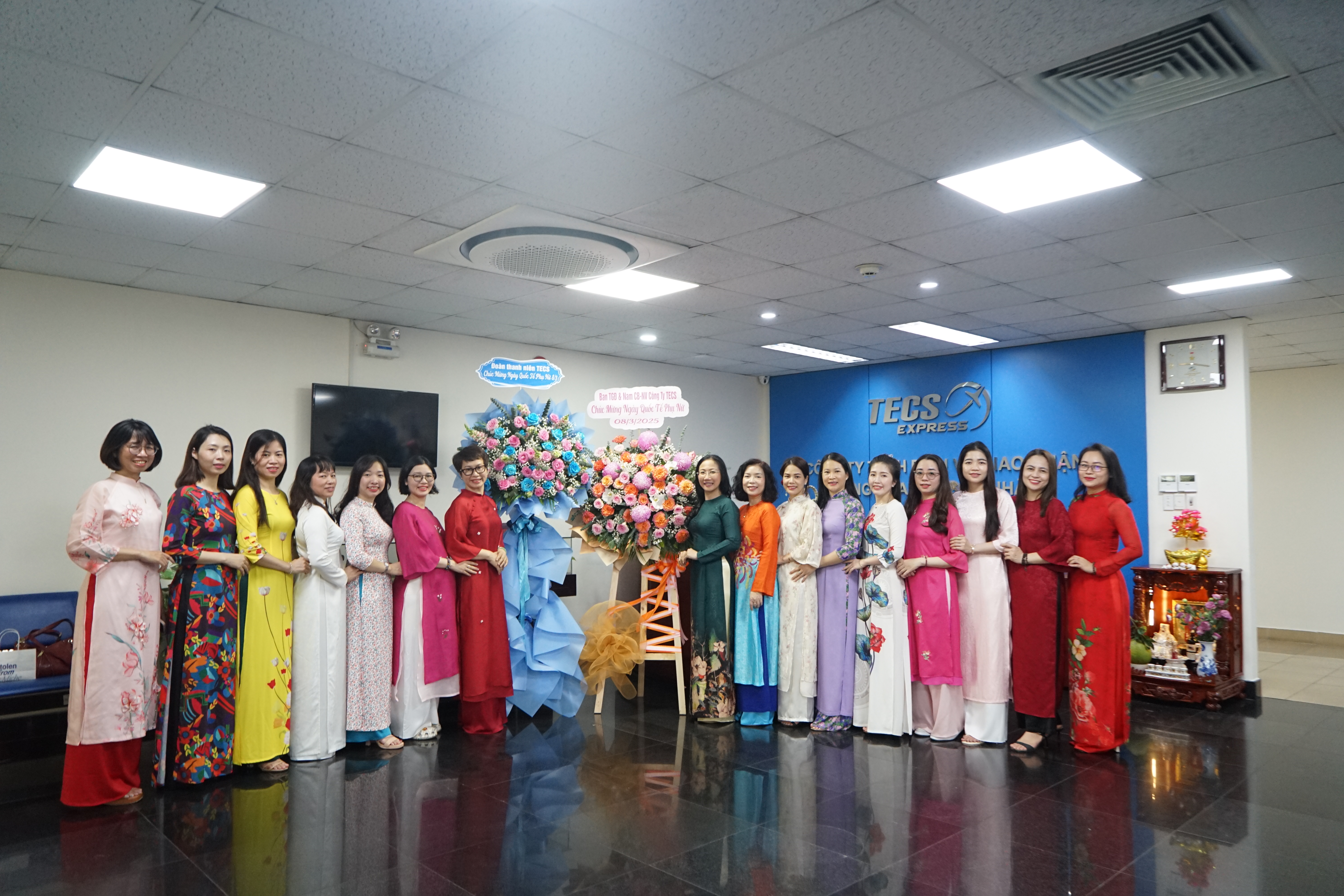Hòa trong không khí vui chung của “Một nửa thế giới”, sáng ngày 8/3, các chị em tại TECS đều diện những bộ áo dài truyền thống rạng rỡ đầy sắc màu. Đây là hoạt động nằm trong khuôn khổ của “Tuần lễ Áo dài” được tổ chức nhân dịp này, nhằm tôn vinh vẻ đẹp duyên dáng của người phụ nữ Việt Nam.
