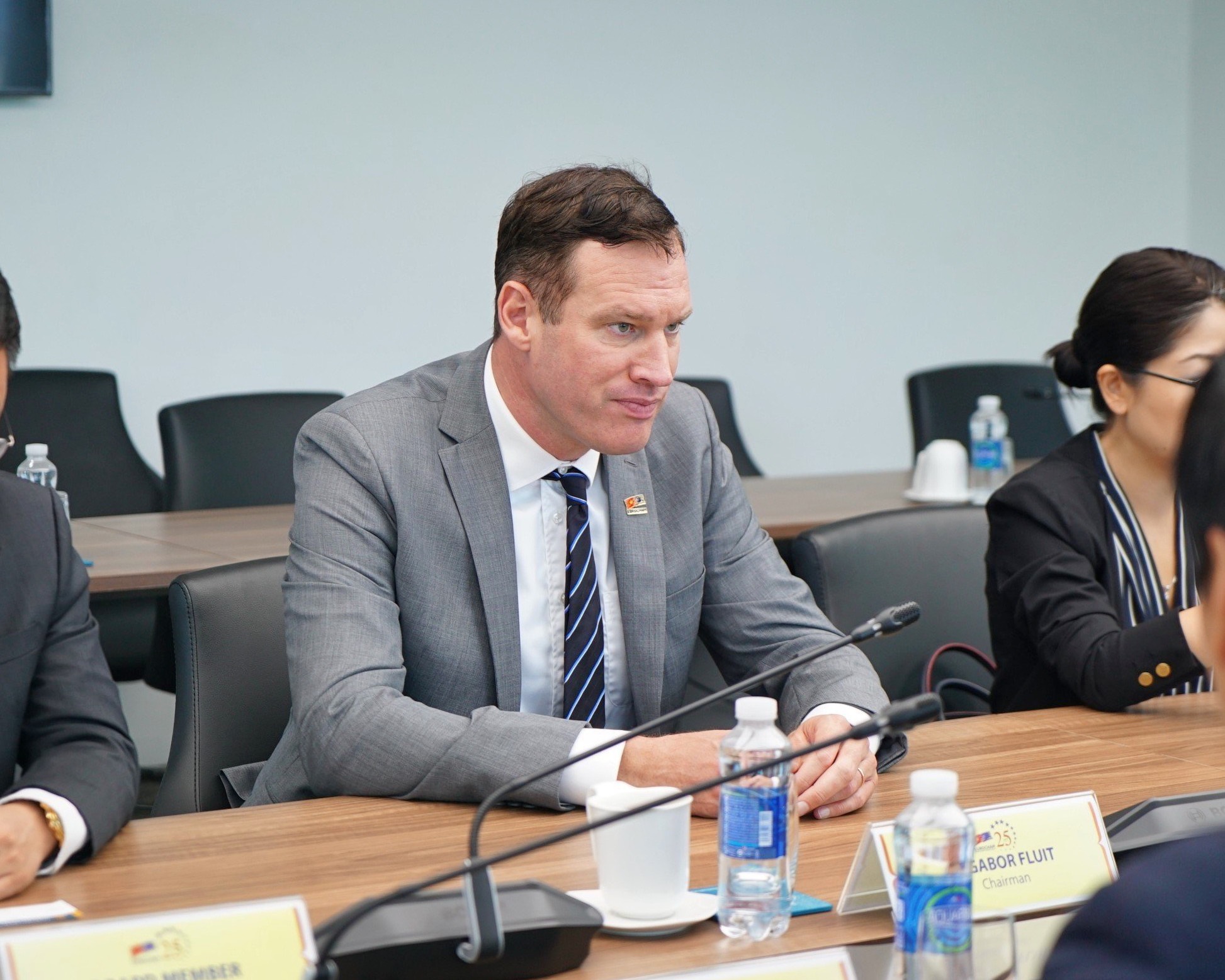 Ông Gabor Fluit – Chủ tịch EuroCham, đã thể hiện mong muốn tiếp tục thúc đẩy sự hợp tác giữa các doanh nghiệp châu Âu và Việt Nam. Ông chia sẻ về vai trò của EuroCham trong việc xây dựng cầu nối giữa cộng đồng doanh nghiệp châu Âu và các nhà hoạch định chính sách Việt Nam. Mục tiêu của EuroCham là tạo động lực thúc đẩy thương mại và đầu tư song phương giữa hai khu vực, đồng thời hỗ trợ các doanh nghiệp trong việc tận dụng lợi ích từ Hiệp định Thương mại Tự do giữa Liên minh châu Âu và Việt Nam (EVFTA).