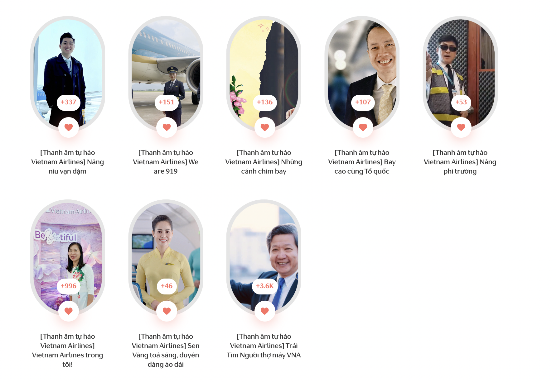 Chúng tôi rất tự hào khi đã nhận được vô số bài hát tuyệt vời, mỗi tác phẩm là một câu chuyện đầy cảm xúc, thể hiện tình yêu với Vietnam Airlines.