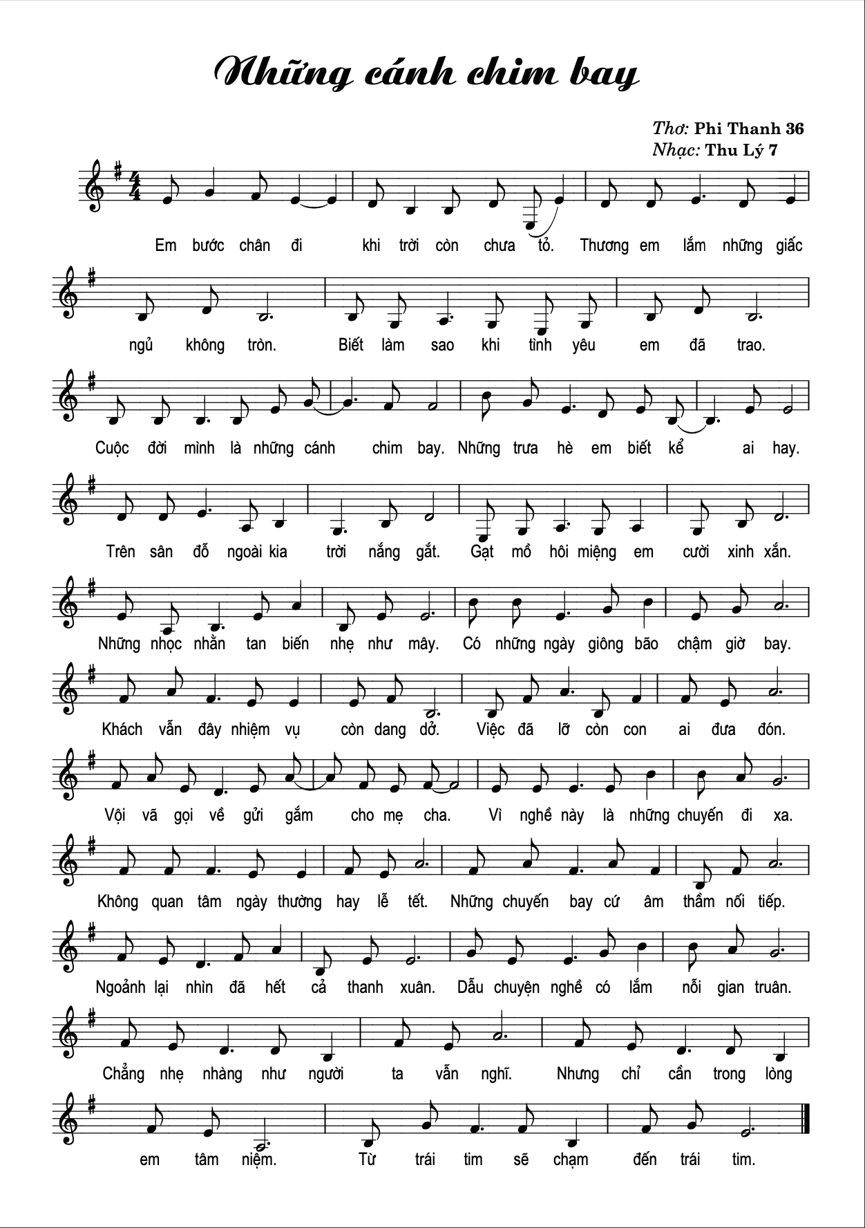 Bài hát Những cánh chim bay là một tác phẩm giàu cảm xúc, được sáng tác bởi hai nữ tác giả Nguyễn Phi Thanh ( lời thơ) và Nguyễn Thị Thu Lý (nhạc).