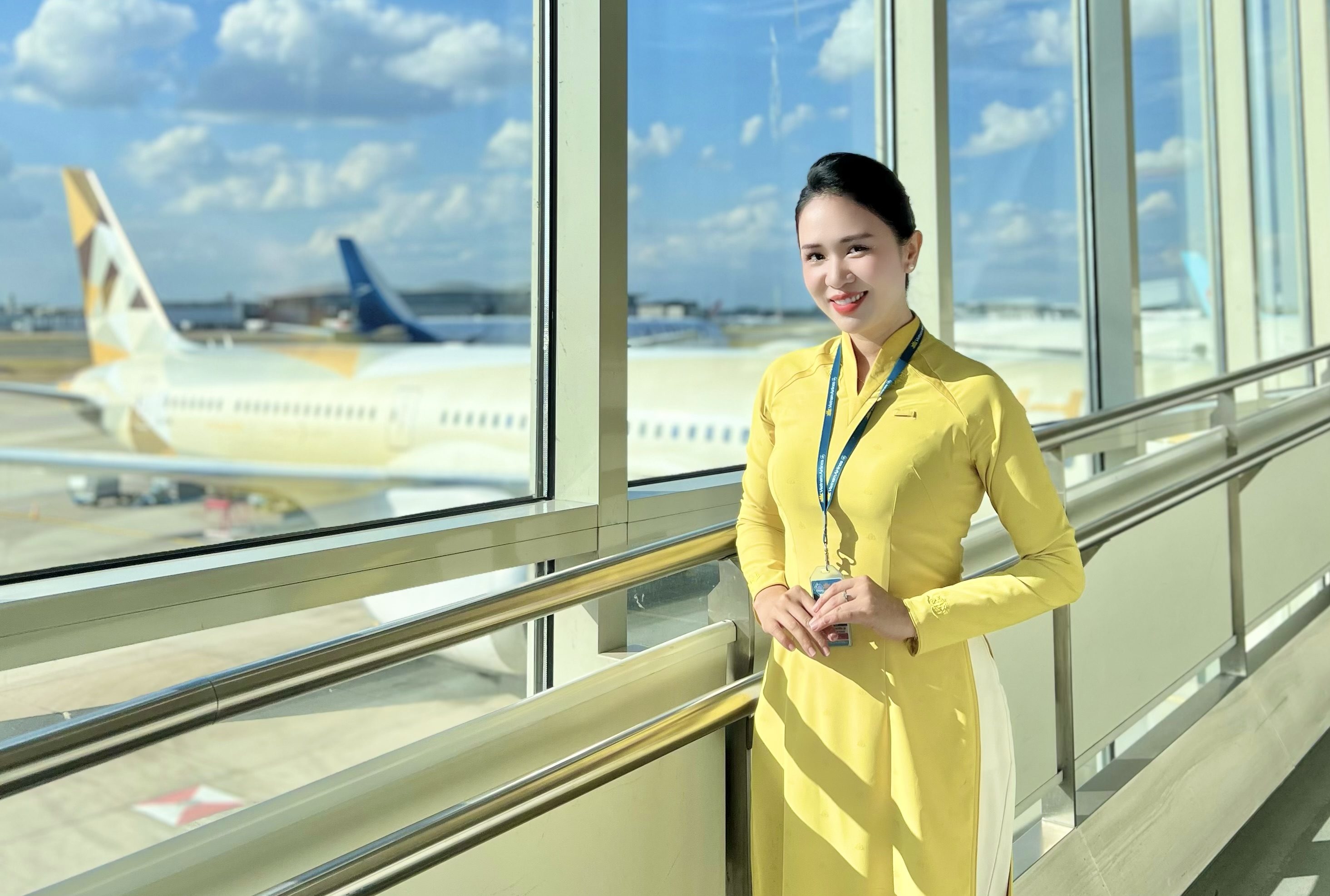 Khi ngồi xuống viết những dòng này, tôi bỗng nhớ lại cả một hành trình dài đã đi cùng bạn. Năm 2010, chuyến bay đầu tiên của tôi bắt đầu trong tà áo dài đỏ rực rỡ, với trái tim ngập tràn háo hức và ước mơ tuổi trẻ. Rồi những năm tháng sau đó, tôi khoác lên mình màu áo xanh năng động nhưng vẫn không kém phần dịu dàng. Hôm nay, trong màu vàng của một tiếp viên trưởng, tôi cảm thấy không chỉ là sự đổi thay trong công việc, mà còn là dấu mốc trưởng thành của chính tôi, gắn liền với chặng đường lớn lên của bạn – Vietnam Airlines.