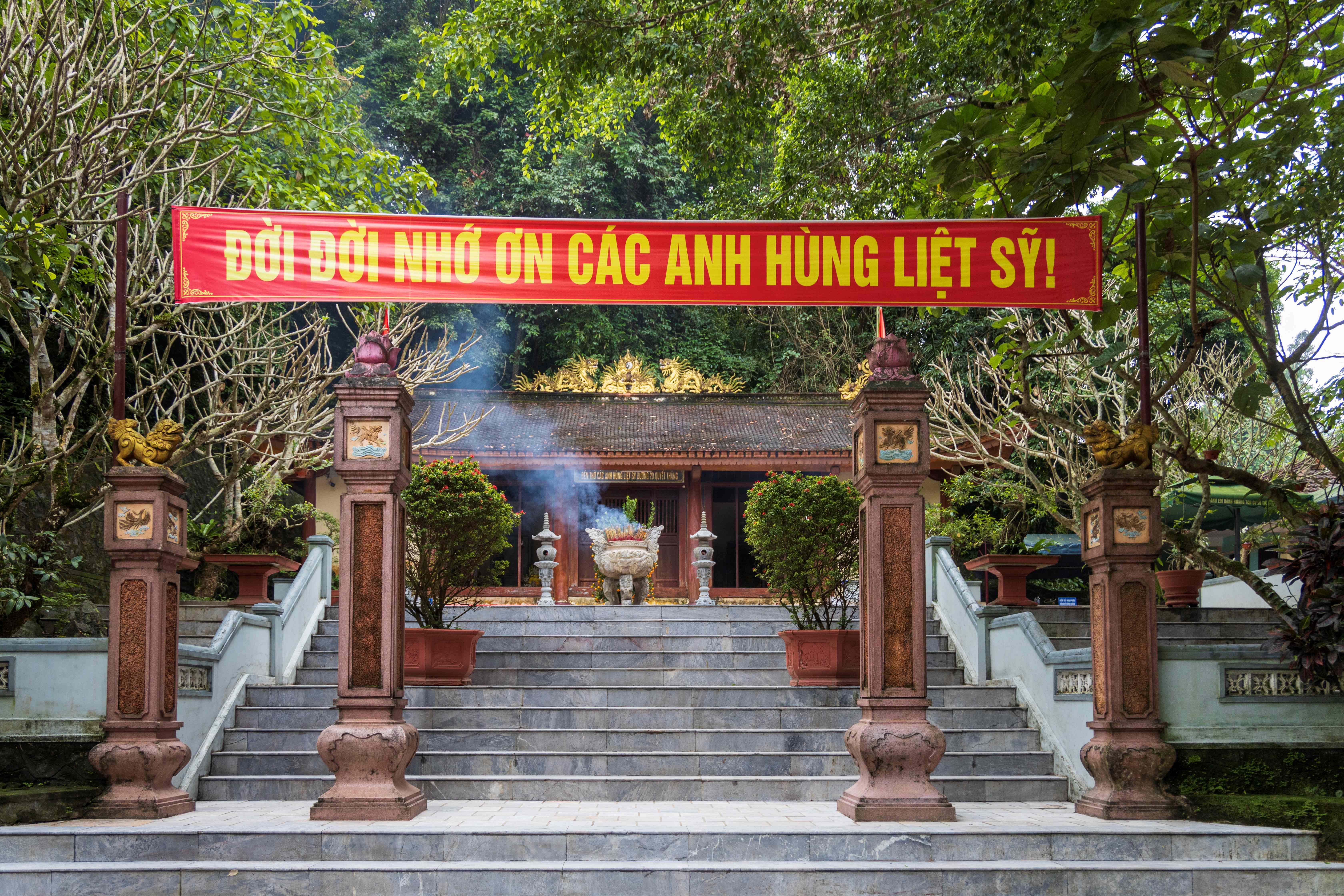 Rời thị trấn Phong Nha, chúng tôi tiếp tục đi về phía tây theo đường 20 Quyết Thắng để đến với các địa điểm như ngầm Trạ Ang, nơi từng là căn cứ của Binh trạm 14, di tích lịch sử hang Tám Cô – nơi ghi dấu sự hy sinh của 8 nữ thanh niên xung phong ở độ tuổi đôi mươi. Cách đó không xa là bia tưởng niệm hang Cô Y tá – một địa chỉ linh thiêng nhắc nhở hậu thế về lòng dũng cảm và sự tận hiến. Không xa là các trọng điểm như Cà Roòng – ATP, nơi hàng nghìn chiến sĩ, thanh niên xung phong, dân công hỏa tuyến đã ngã xuống để bảo vệ tuyến đường huyết mạch. Cũng tại đây, một ngôi đền đã được xây dựng để tưởng niệm các anh hùng liệt sĩ. Điểm cuối hành trình của đoàn là Cột mốc biên giới Việt – Lào 543, nơi đánh dấu sự hy sinh của các chiến sĩ biên phòng trong nhiệm vụ bảo vệ biên giới thiêng liêng của Tổ quốc.