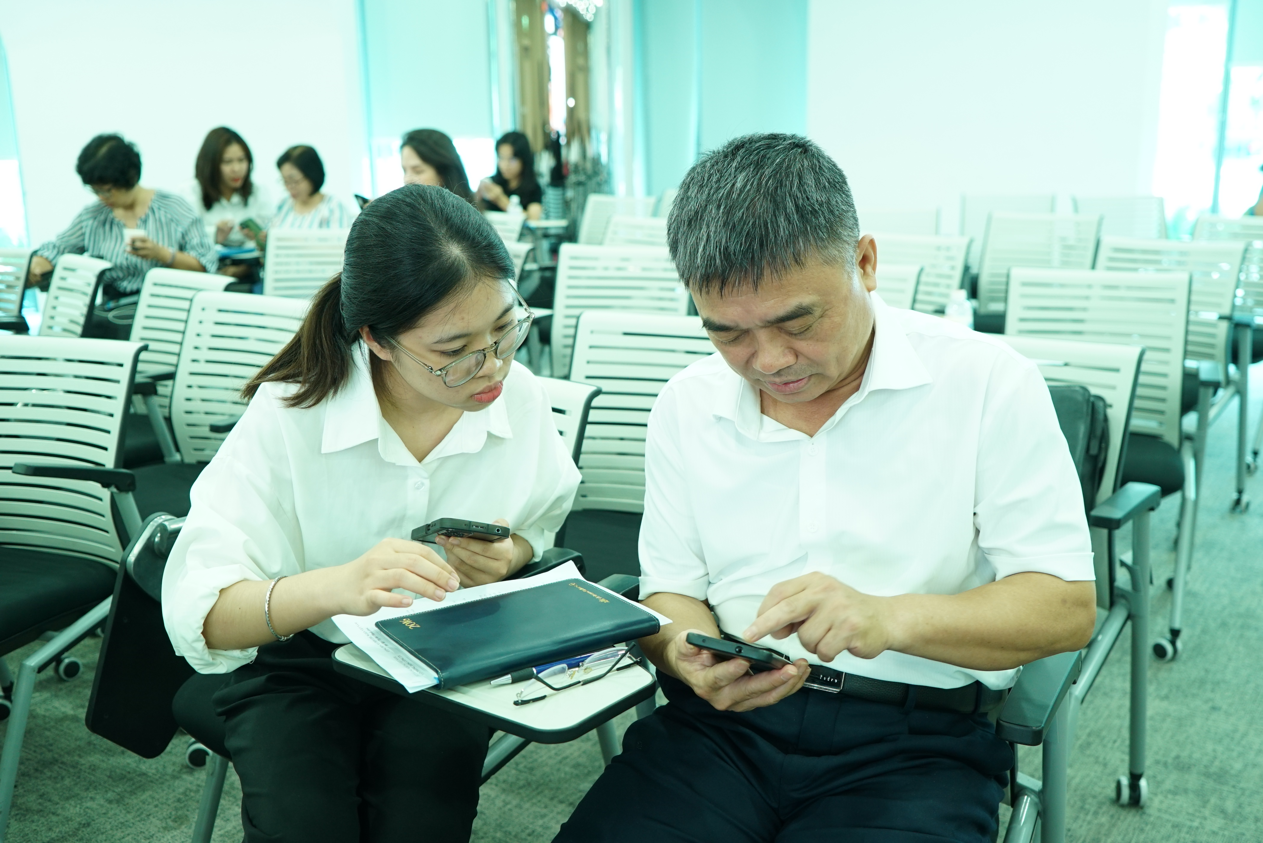 Bắt đầu chương trình tọa đàm buổi chiều, đại diện PVI hướng dẫn CBNV tải app myPVI và hướng dẫn sử dụng các chức năng của app.