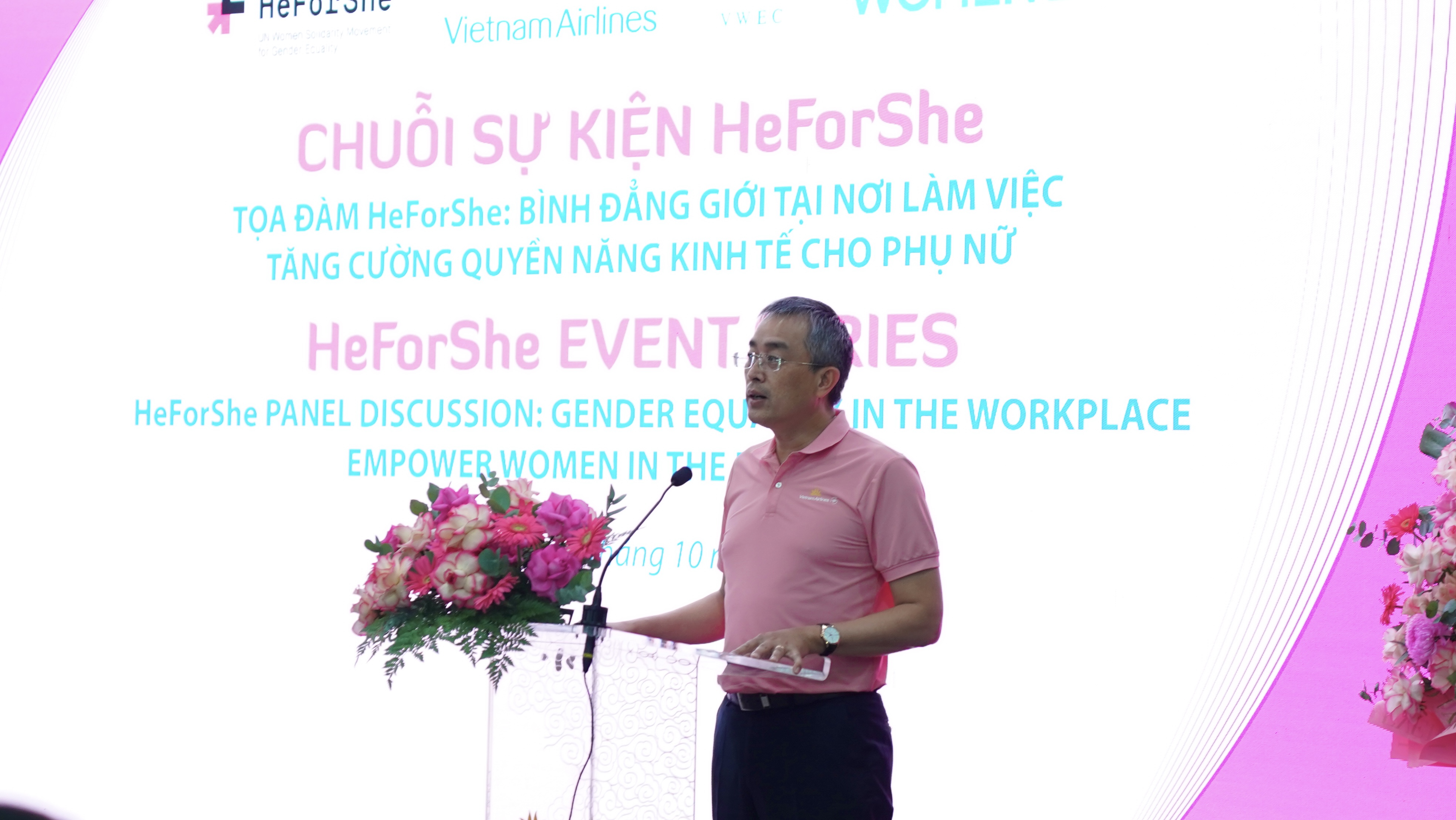 Phát biểu tại sự kiện ký kết HeForShe, lãnh đạo Vietnam Airlines ông Đặng Ngọc Hòa cũng đã nhấn mạnh vai trò của CBNV nữ, đồng thời chú trọng các hoạt động thúc đẩy bình đẳng giới: “Việc hợp tác với UN Women và tham gia phong trào HeForShe không chỉ thể hiện trách nhiệm xã hội với cộng đồng, mà còn là cơ hội để Vietnam Airlines khẳng định cam kết của mình trong việc xây dựng môi trường làm việc công bằng. Chúng tôi tin rằng, bình đẳng giới không chỉ mang lại lợi ích cho phụ nữ mà còn giúp cải thiện hiệu quả công việc và nâng cao chất lượng dịch vụ của Vietnam Airlines.”