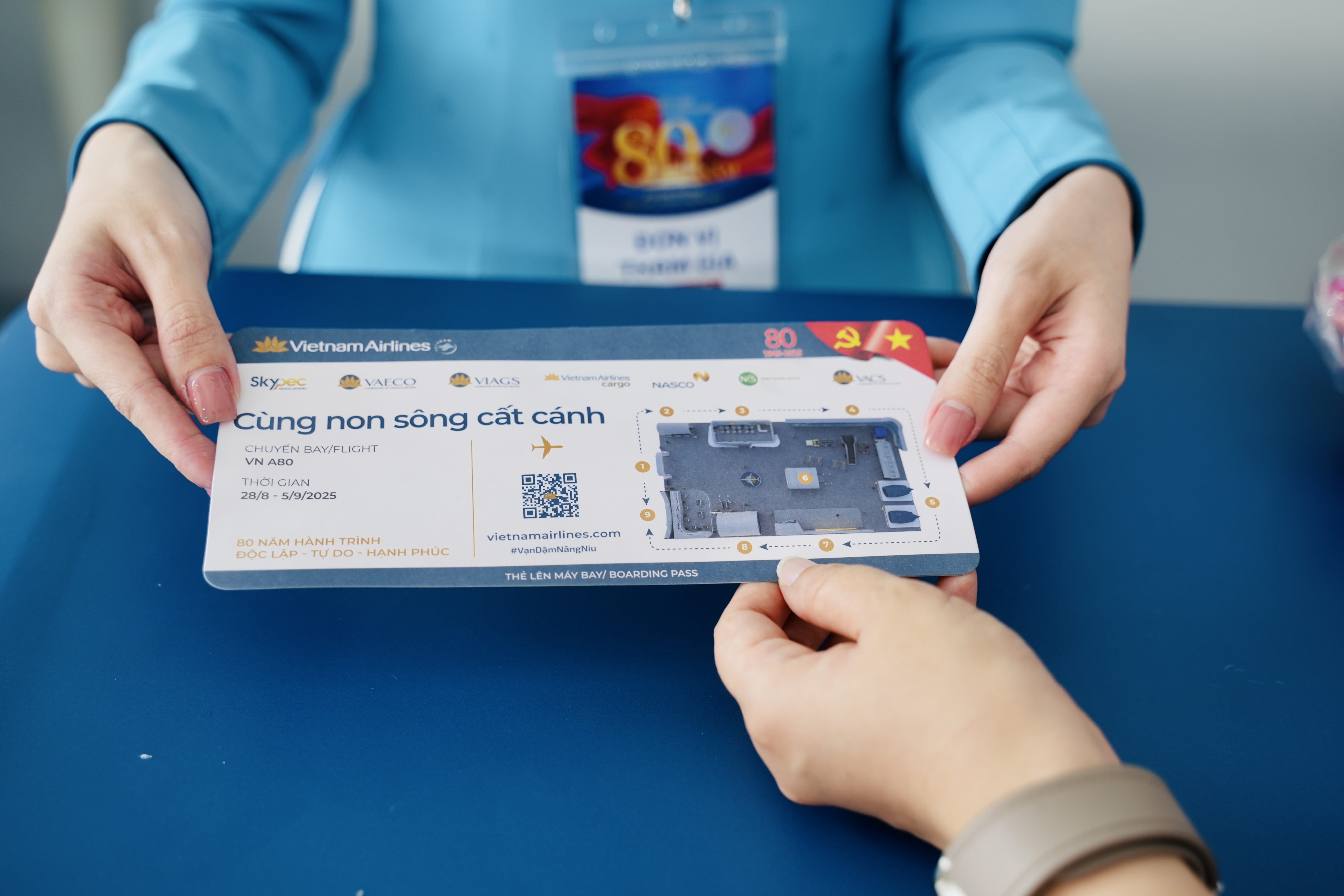 Khách tham quan sẽ nhận được thẻ lên máy bay phiên bản đặc biệt ” Cùng non sông cất cánh”. (Ảnh: VNA)