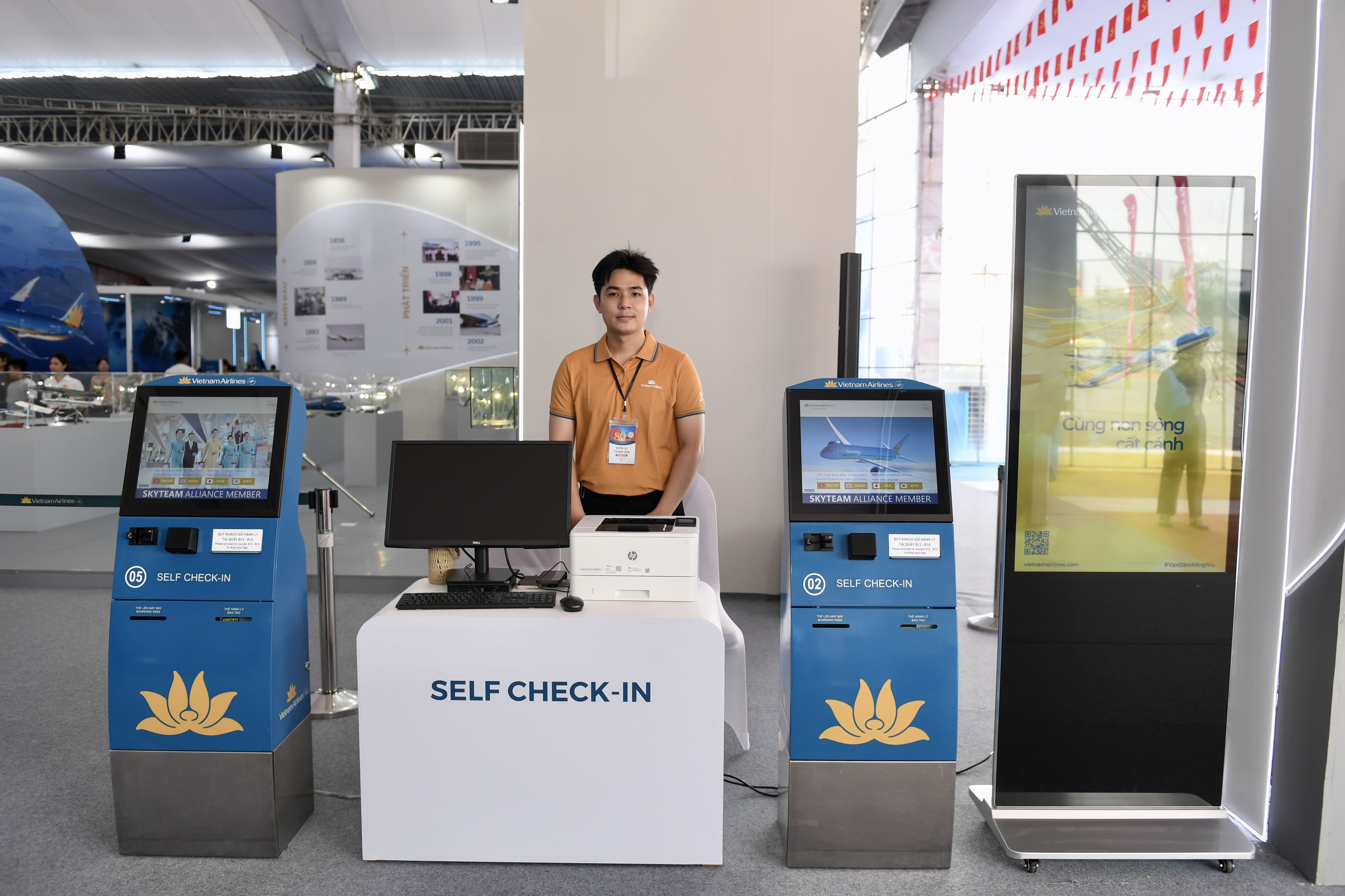 Tại triển lãm, khách tham quan còn được trải nghiệm dịch vụ Self Check in của VNA. (Ảnh: VNA)