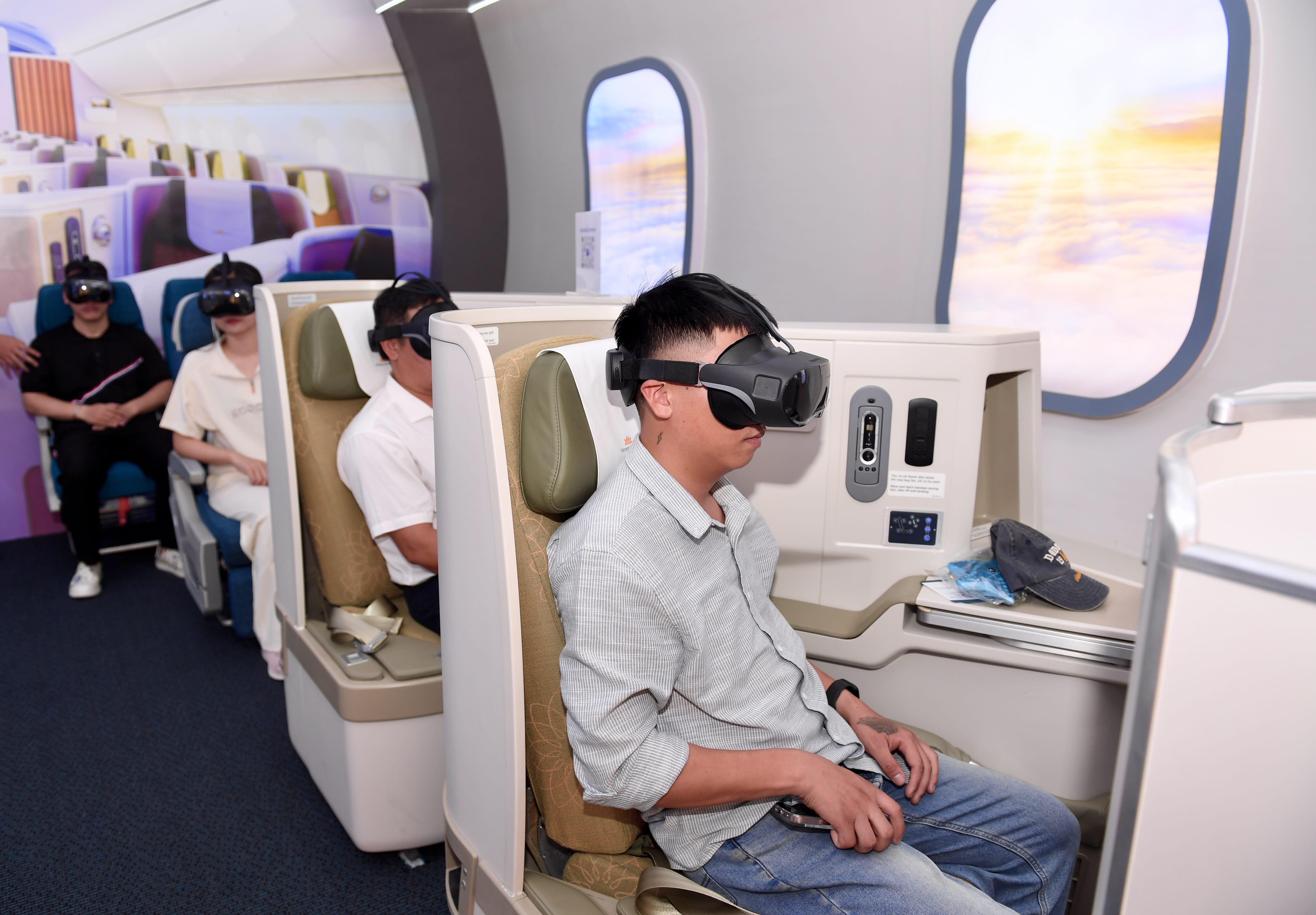 Tại đây hành khách được trải nghiệm những tiện ích trên dòng Airbus A350 với hệ thống giải trí hiện đại, ghế ngồi tiện nghi và công nghệ thực tế ảo. (Ảnh: VNA)