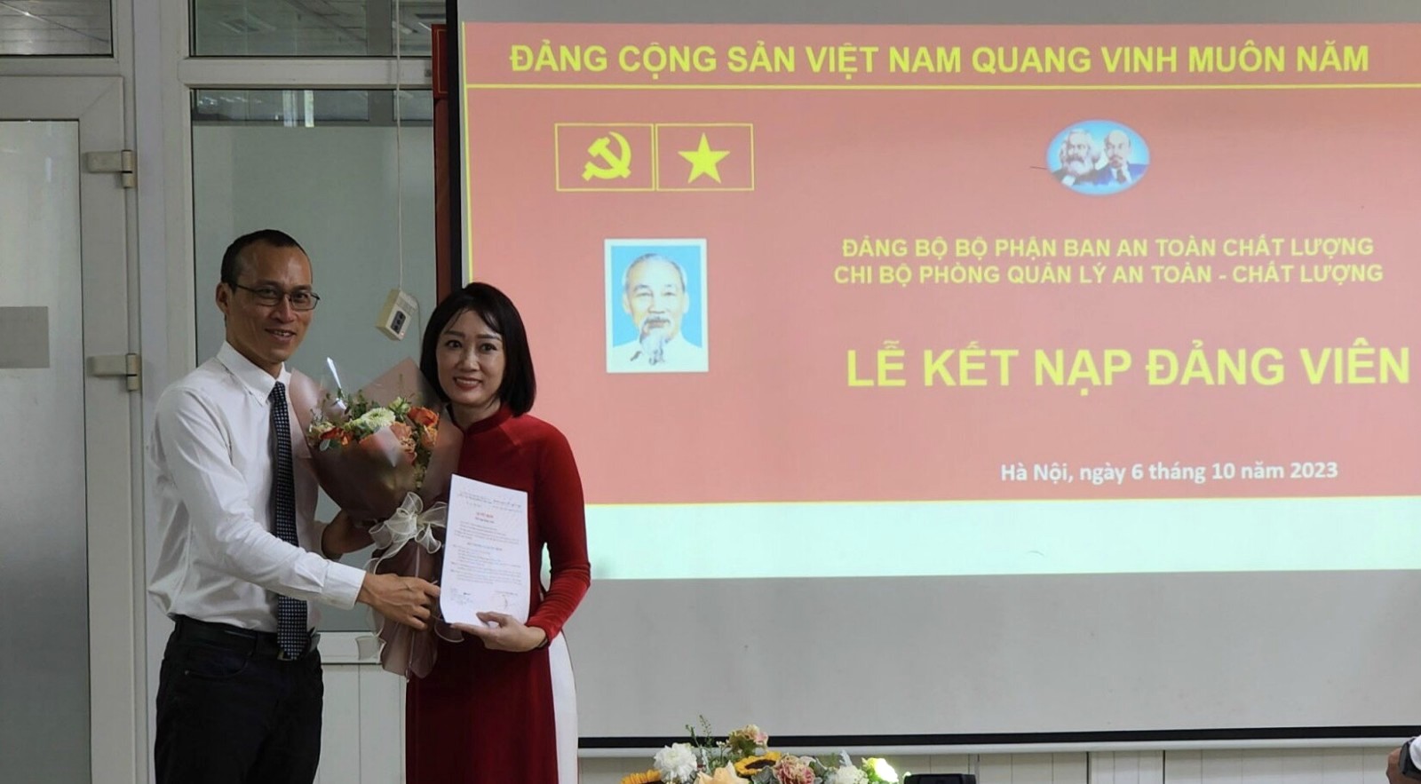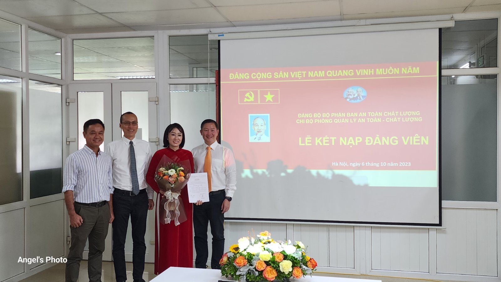 Tham dự Lễ kết nạp có đồng chí Nguyễn Hải Thanh, Đảng ủy viên Đảng Bộ Ban An toàn Chất lượng; đồng chí Âu Duy Linh, Bí thư Chi bộ Phòng Quản lý An toàn Chất lượng; đồng chí Trần Việt Anh, Phó Bí thư Chi bộ, Ban An toàn – Chất lượng, cùng toàn thể đảng viên thuộc Chi bộ Phòng Quản lý An toàn – Chất lượng, Ban ATCL.