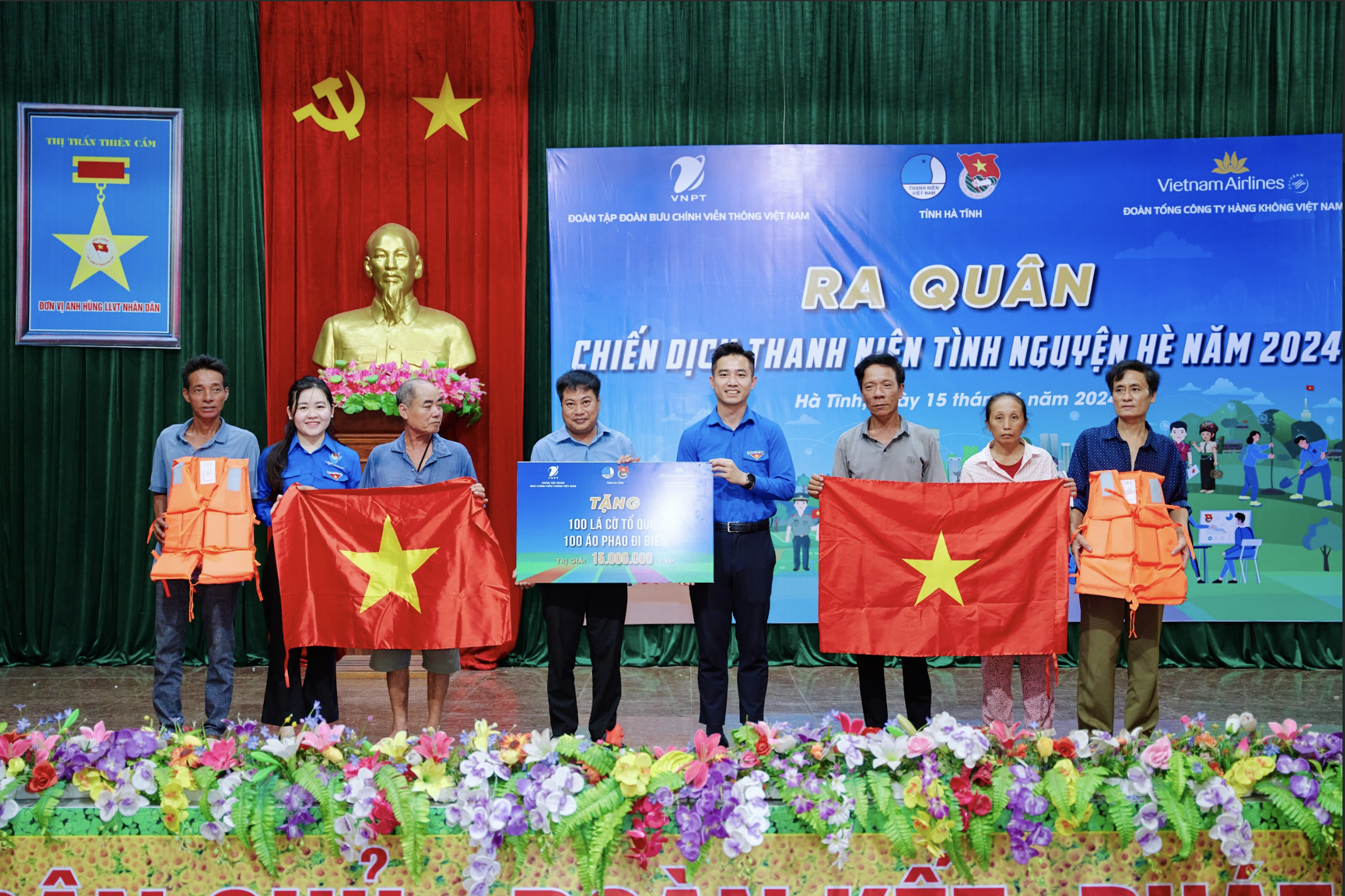 + Trao tặng 100 áo phao và 100 cờ Tổ quốc cho bà con ngư dân.