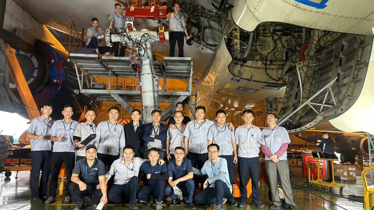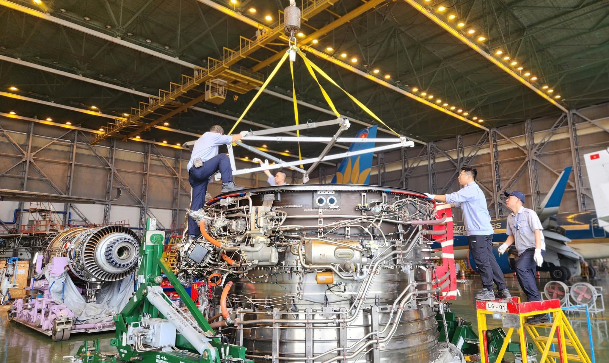 Để đảm bảo quy trình thay LDG diễn ra suôn sẻ, VAECO đã huy động sự tham gia của nhiều đơn vị trong công ty, đồng thời nhận được sự hỗ trợ kỹ thuật và tư vấn từ các chuyên gia hàng đầu của Airbus, Safran và Liebherr.