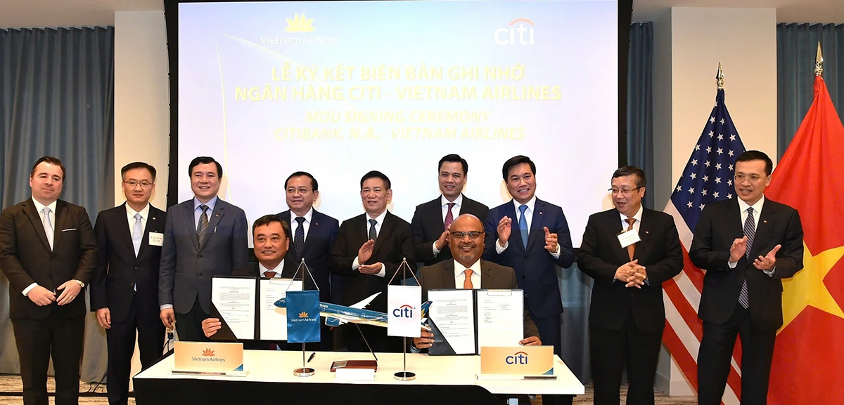 Theo đó, vừa qua tại New York, Vietnam Airlines đã ký kết Biên bản ghi nhớ (MOU) với Ngân hàng CitiBank về cam kết tài trợ vốn cho các dự án đầu tư chiến lược của Vietnam Airlines.