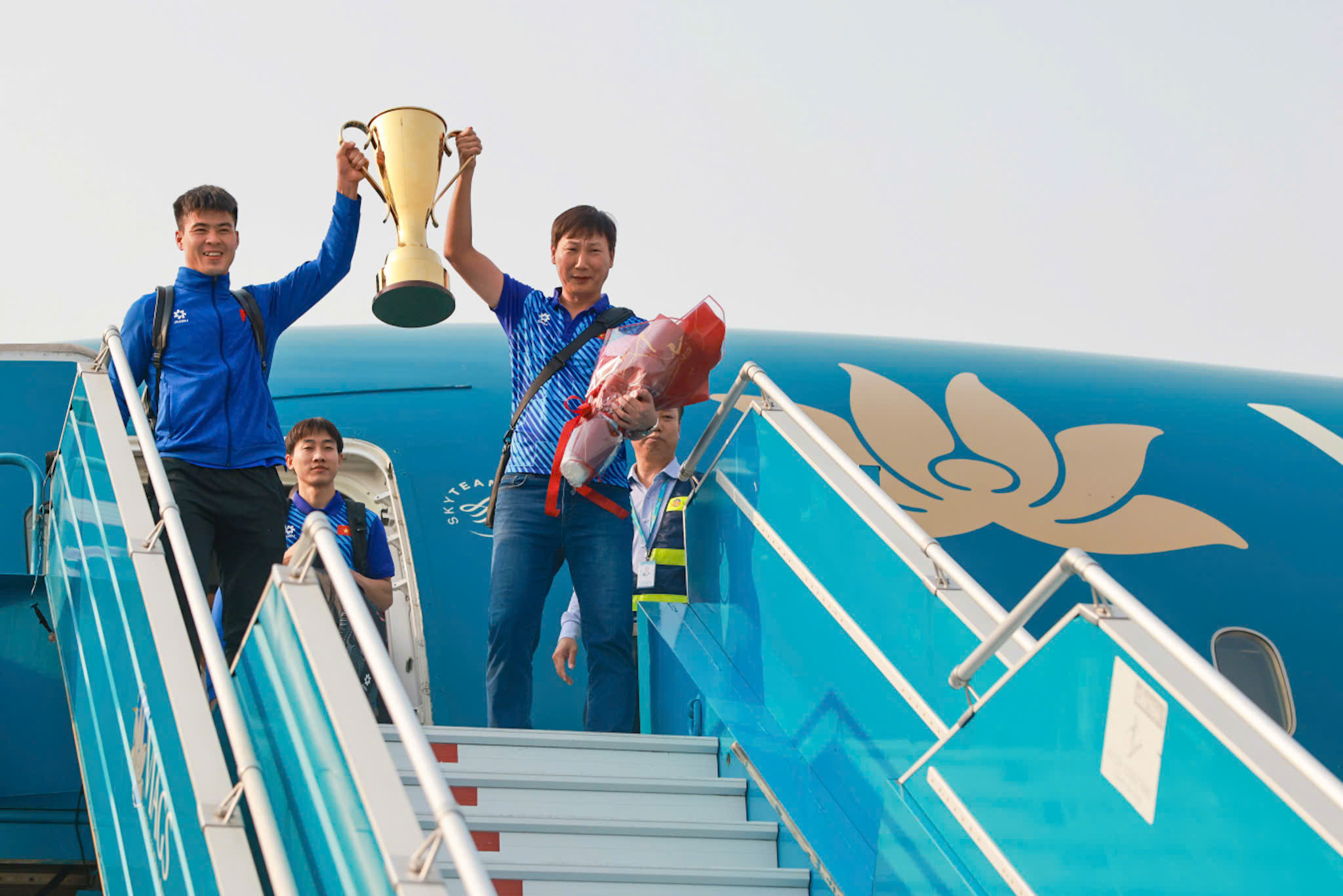 Trong không khí hân hoan, VNA đã dành tặng những phần quà ý nghĩa đến đội tuyển như vé máy bay nội địa hạng thương gia cho toàn bộ các tuyển thủ, thẻ Bông Sen hạng Bạch kim cho huấn luyện viên Kim Sang Sik để tri ân, động viên tinh thần, đồng thời khẳng định sự đồng hành của VNA cùng bóng đá Việt Nam.
