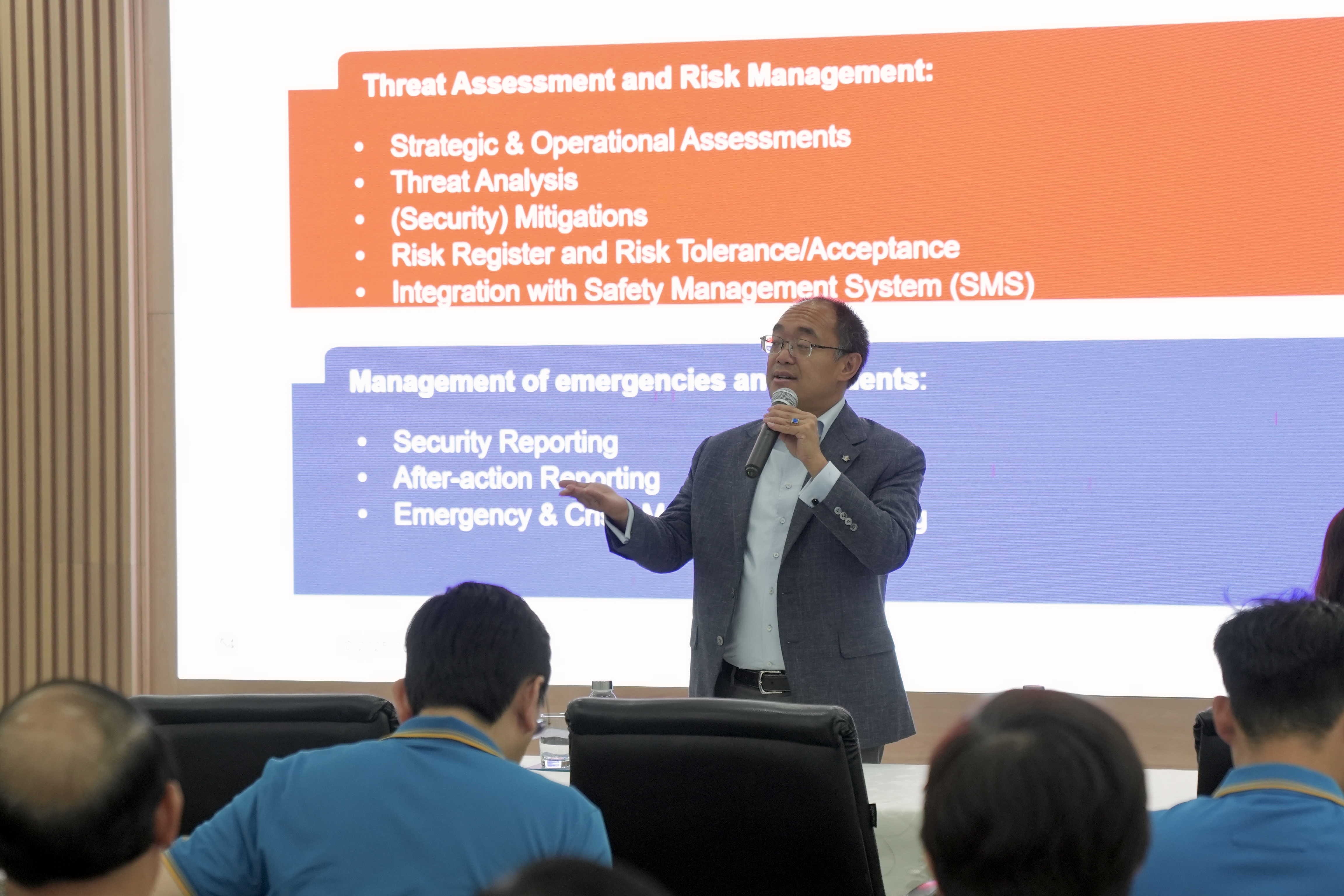 Bên cạnh đó, các học viên được tiếp cận với khái niệm Security Management Systems (SeMS) – hệ thống quản lý an ninh do ICAO và IATA khuyến nghị áp dụng, nhằm tích hợp quản trị rủi ro an ninh vào mọi hoạt động khai thác của hãng hàng không. Đây là bước đi quan trọng giúp Vietnam Airlines tiếp tục nâng cao năng lực quản trị theo chuẩn mực quốc tế, đồng thời củng cố niềm tin đối với hành khách và đối tác.