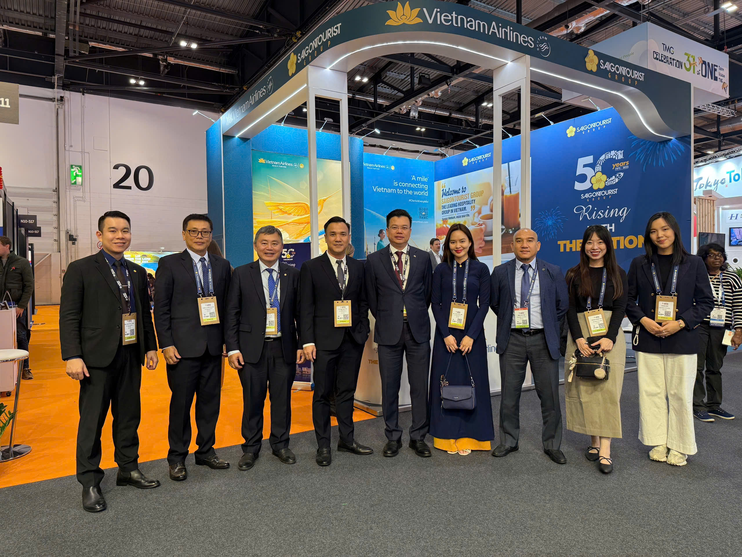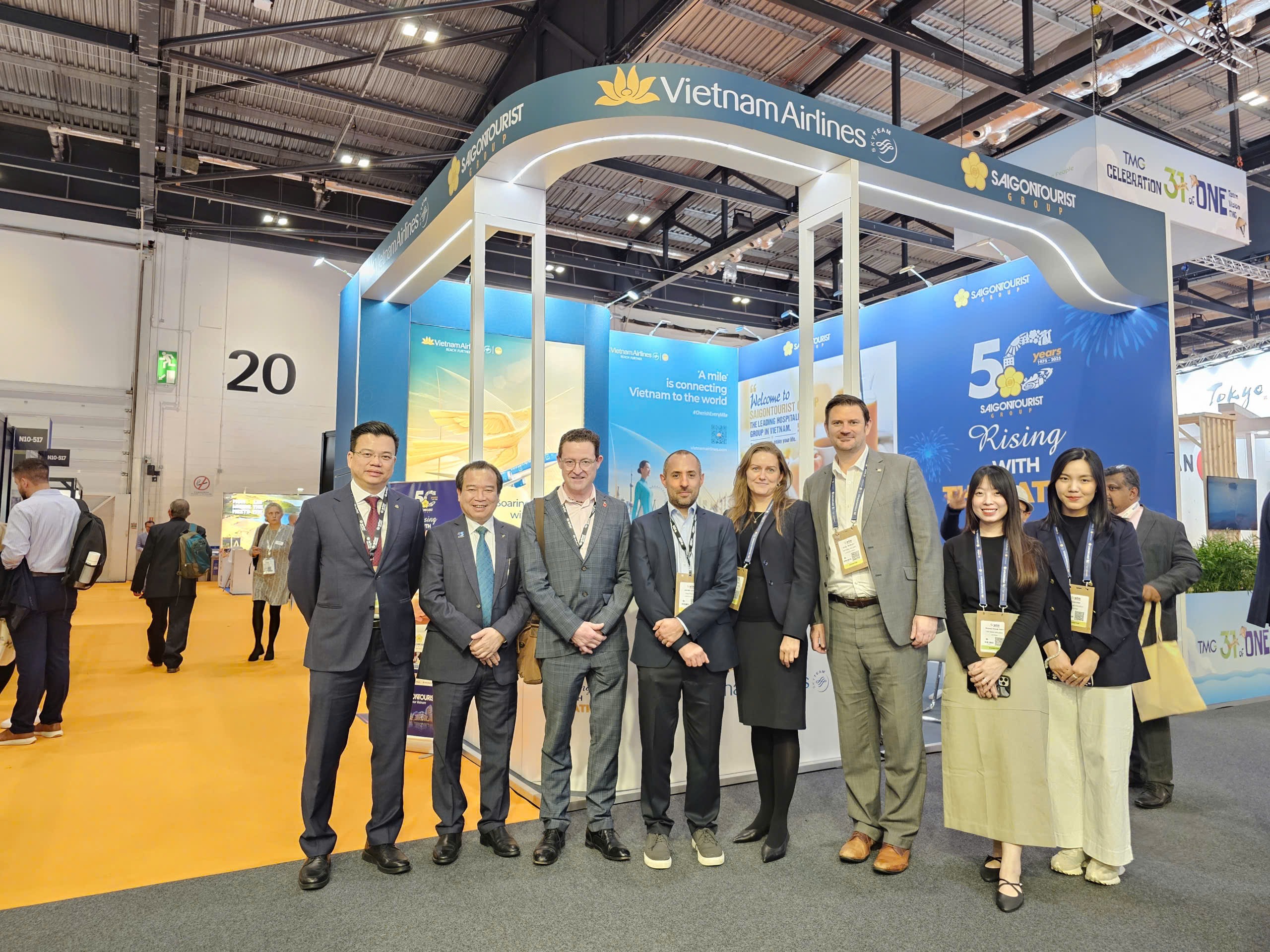 Nằm trong khu trưng bày của Việt Nam, gian hàng Vietnam Airlines có diện tích 35,75 m², được thiết kế hiện đại, mang đậm bản sắc văn hóa Việt. Tại đây, Hãng giới thiệu đến đối tác và khách tham quan các sản phẩm, dịch vụ hàng không quốc tế, mạng đường bay kết nối Việt Nam – châu Âu cùng các giải pháp du lịch trọn gói hướng tới trải nghiệm tiện nghi, bền vững.