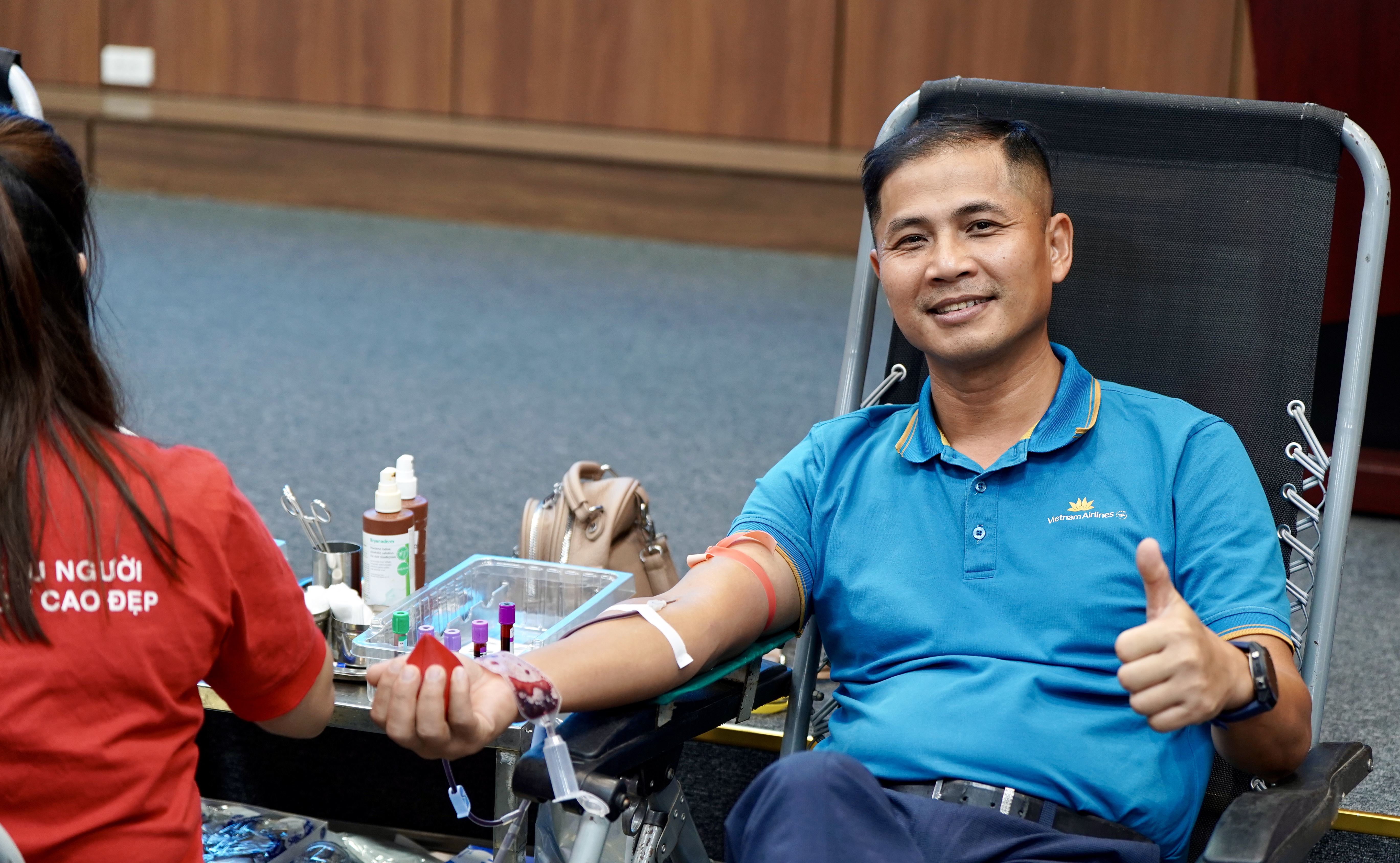 Hiến máu tình nguyện là một phong trào đã lan tỏa rộng khắp cả nước với nhiều kết quả tích cực, mang lại cơ hội sống cho hàng ngàn bệnh nhân. Tuy nhiên, nhu cầu về máu vẫn luôn là vấn đề cấp bách trong ngành y tế, khi nhiều bệnh viện trên toàn quốc thường xuyên rơi vào tình trạng thiếu hụt máu để điều trị kịp thời cho người bệnh. Chương trình “Giọt hồng Vietnam Airlines” không chỉ đóng góp thiết thực cho việc cung cấp máu, mà còn lan tỏa tinh thần trách nhiệm vì cộng đồng của mỗi cán bộ, nhân viên VNA.