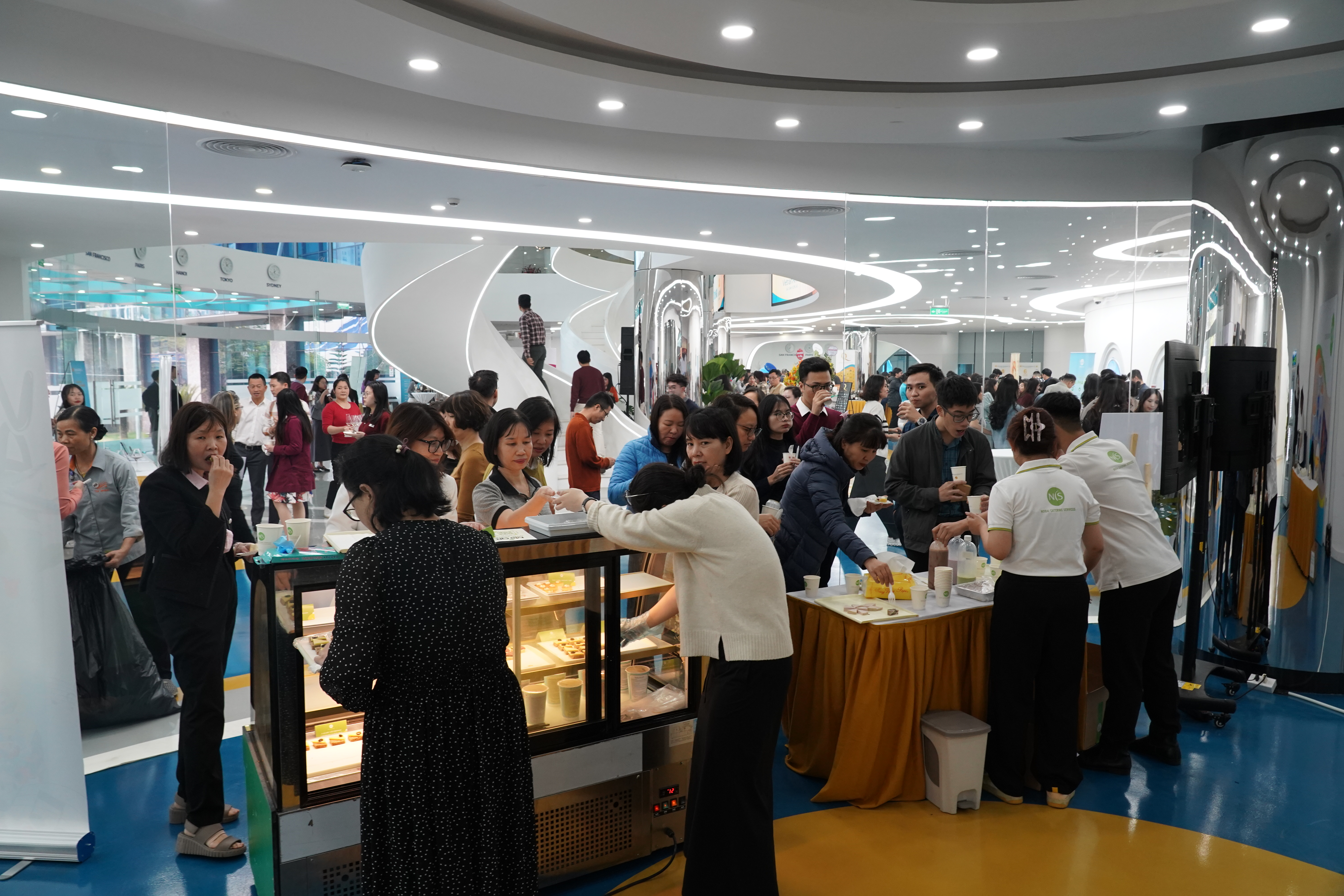 Những gian hàng này mang đến các sản phẩm độc đáo, từ các món ăn đậm đà bản sắc của NCS và VACS, trà PESO tinh tế, rượu vang cao cấp của Q.Winery Selection, bánh ngọt sáng tạo từ Hakyo Fusion Bakery đến các dịch vụ tiện ích từ MoMo, Samsung, Xanh SM.