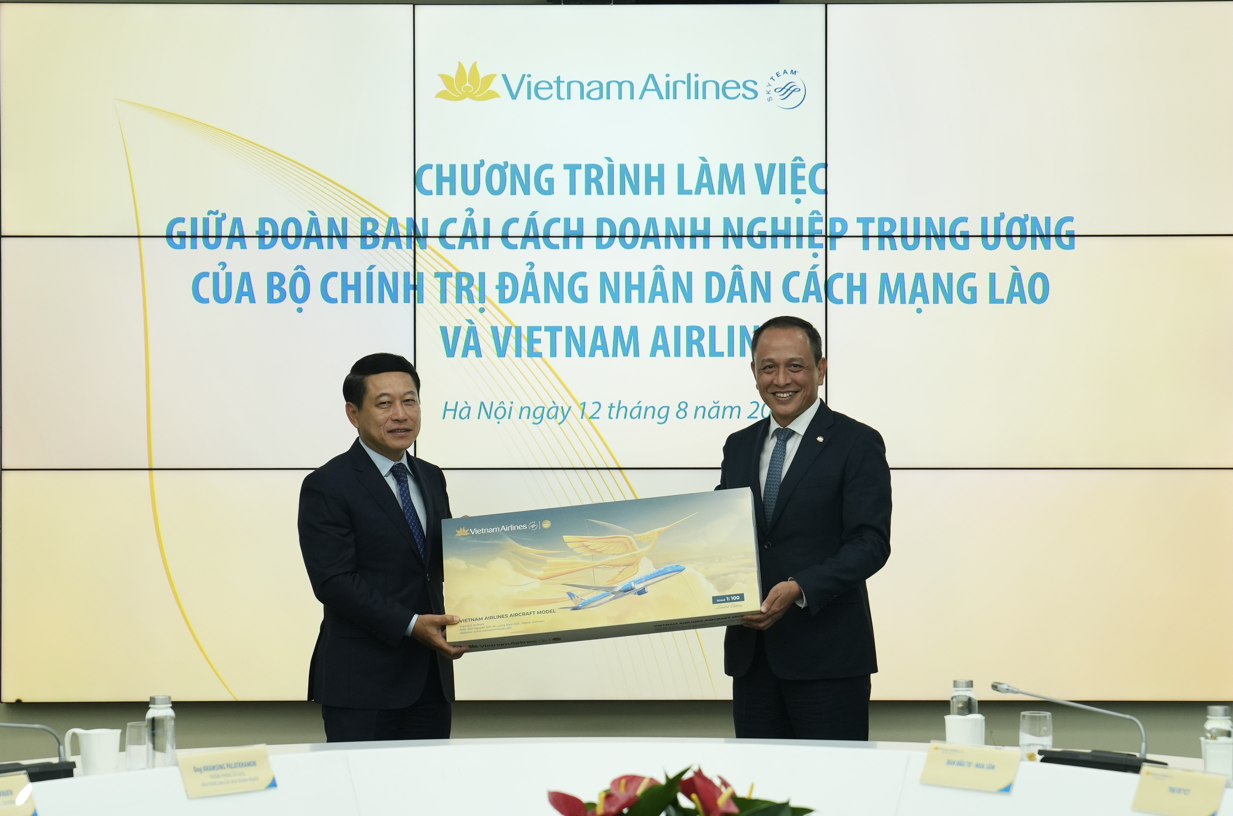 Đoàn Ban Cải cách Doanh nghiệp Trung ương do ông Saleumxay Kommasith – Ủy viên Bộ Chính trị, Phó Thủ tướng Chính phủ Lào, Trưởng Ban Cải cách Doanh nghiệp Trung ương dẫn đầu, cùng ông Santiphap Phomvihane – Ủy viên Trung ương Đảng, Bộ trưởng Bộ Tài chính; ông Sonexay Sitphaxay – Ủy viên Trung ương Đảng, Bộ trưởng tại Văn phòng Thủ tướng; ông Kikeo Chanthaboury – Phó Chánh Văn phòng Trung ương Đảng, Thường trực Ban Cải cách Doanh nghiệp Trung ương; cùng lãnh đạo và cán bộ các ban, bộ, ngành, cơ quan hàng không, đối ngoại và Đại sứ quán Lào tại Việt Nam.