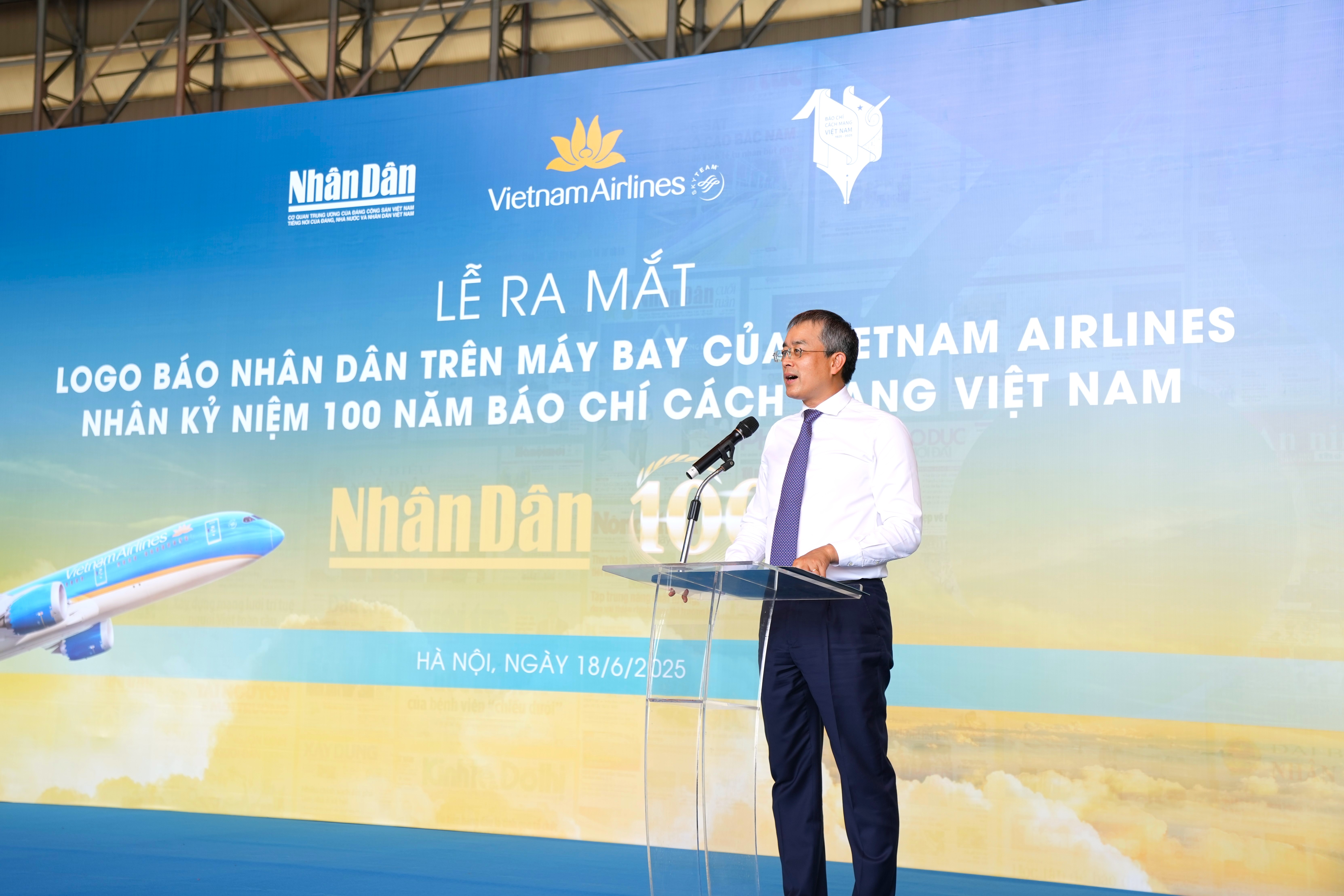 Phát biểu về ý nghĩa của sự kiện, ông Đặng Ngọc Hòa, Chủ tịch Hội đồng quản trị Vietnam Airlines, chia sẻ: “Việc ra mắt máy bay mang biểu trưng kỷ niệm 100 năm ngày Báo chí Cách mạng Việt Nam là sự kiện mang ý nghĩa sâu sắc, không chỉ thể hiện tình cảm tri ân của Vietnam Airlines đối với đội ngũ những người làm báo cách mạng, mà còn là dấu ấn của sự gắn kết giữa Vietnam Airlines và Báo Nhân Dân, hai cơ quan cùng mang trọng trách truyền tải giá trị Việt Nam đến với thế giới. Thân tàu bay giờ đây không chỉ là phương tiện vận chuyển, mà còn là cánh bay của niềm tin, của văn hóa và của khát vọng phát triển đất nước. Chúng tôi tin tưởng rằng, với sự đồng hành này, hình ảnh Việt Nam sẽ tiếp tục được lan tỏa một cách sâu sắc, hiện đại và đầy tự hào trên bầu trời quốc tế.”