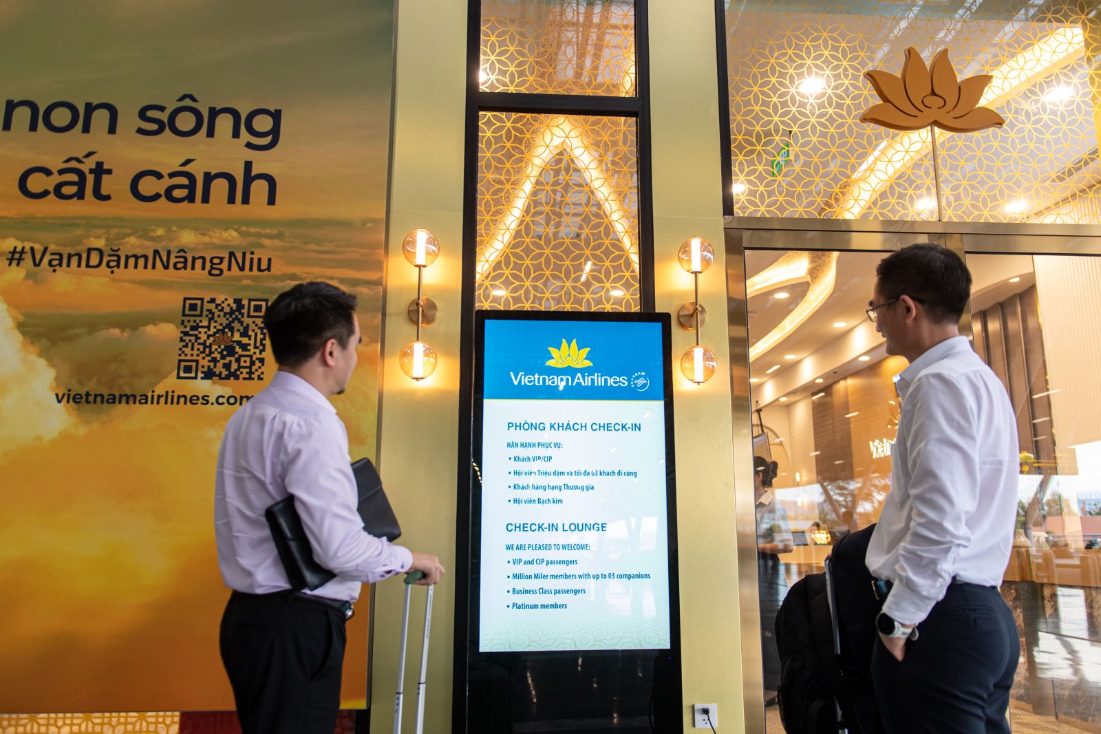 Không gian độc quyền này có diện tích trên 270 m2, được bố trí 6 quầy làm thủ tục và 40 ghế ngồi, nằm ngay cạnh lối vào đầu tiên của nhà ga. Đây sẽ là “lối đi riêng” dành cho những khách hàng VIP, CIP, hội viên Triệu dặm (MM), khách hạng Thương gia (C) và hội viên Bông Sen Vàng hạng Bạch kim (Pla).